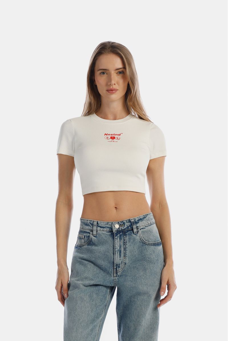 Camiseta Crop Marfil Texto