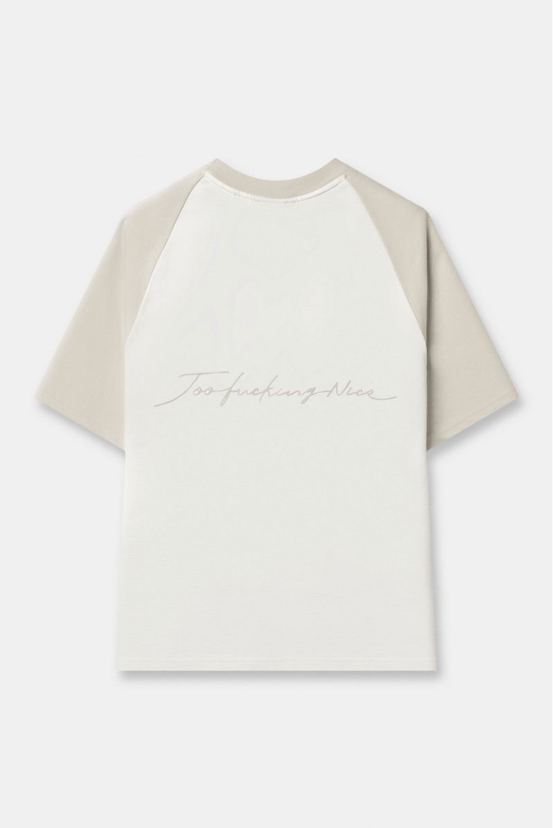 Camiseta Oversize Manga Ranglan Marfil Texto