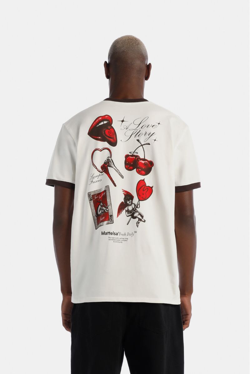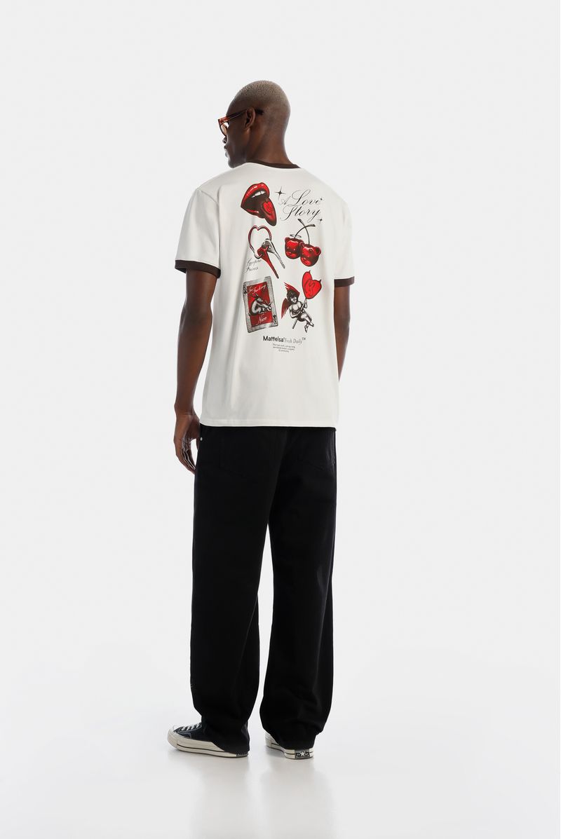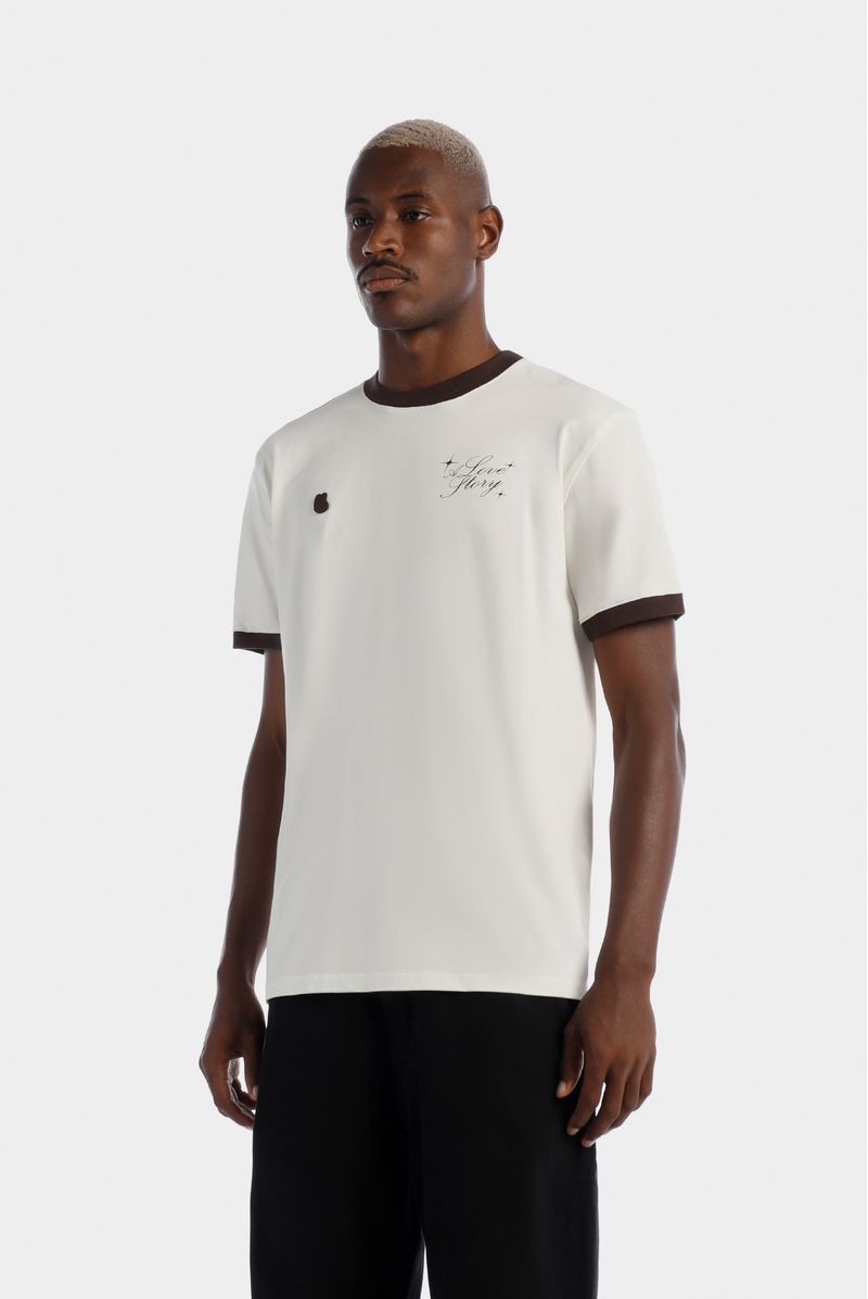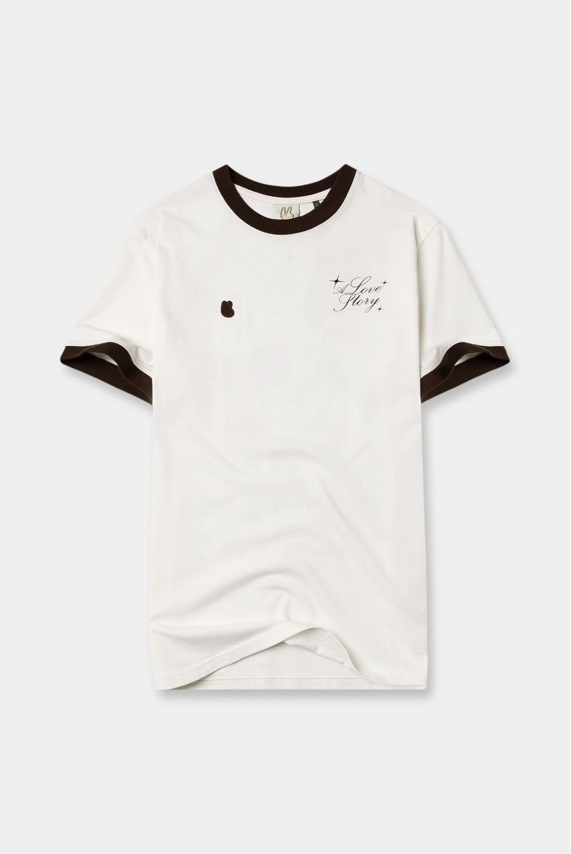 Camiseta Regular Fit confeccionada en un Jersey Premium de alto gramaje de 250gr de peso, con cuello y puños en rib, en contraste color café. Con estampación en frente y espalda en la técnica de estampación textil. Además lleva un aplique bordado.