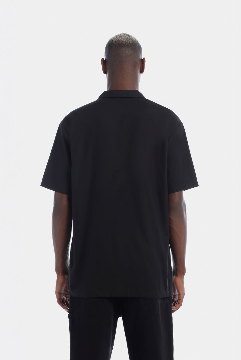 Camisa Oversize confeccionada en un tejido plano Premium de gramaje medio de 135gr de peso. Lleva un banderín en ruedo.