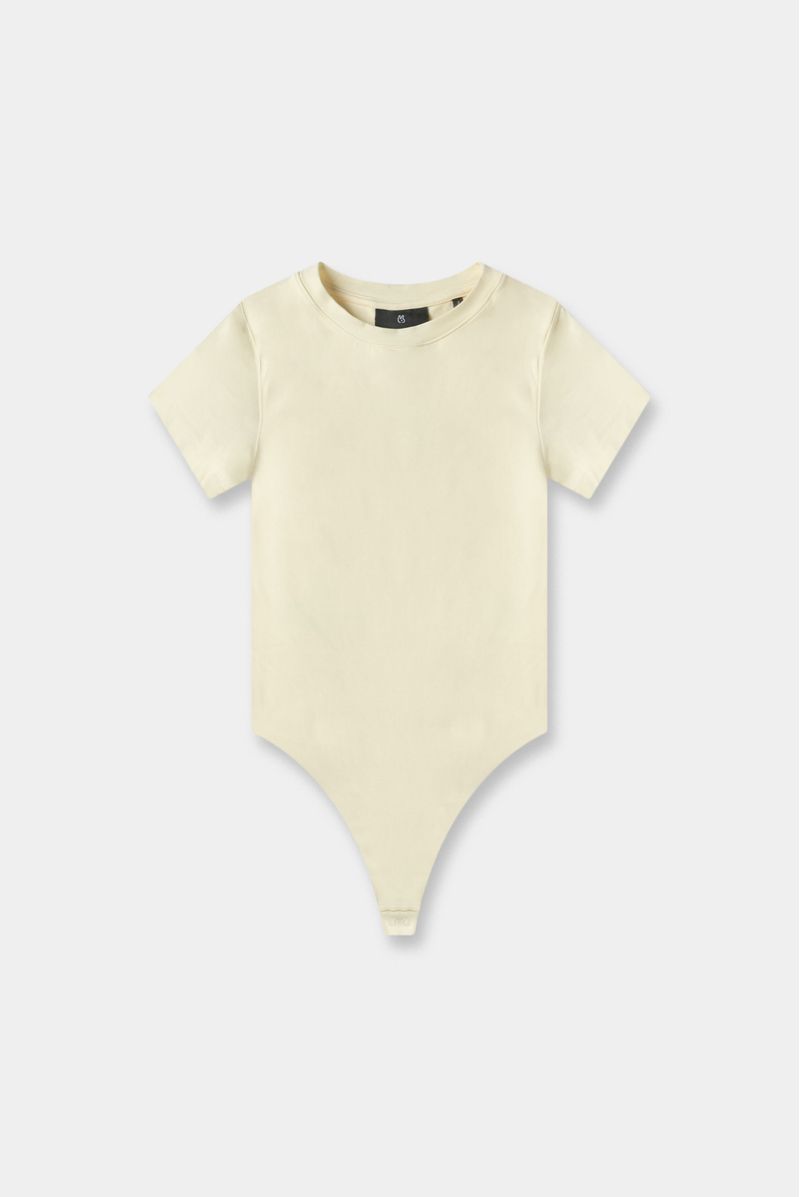 Body manga corta amarillo confeccionado en un jersey con elástano de 200 gramos. Texto en espalda estampado en técnica puff. Toda la prenda es doble. Broches en entrepierna.