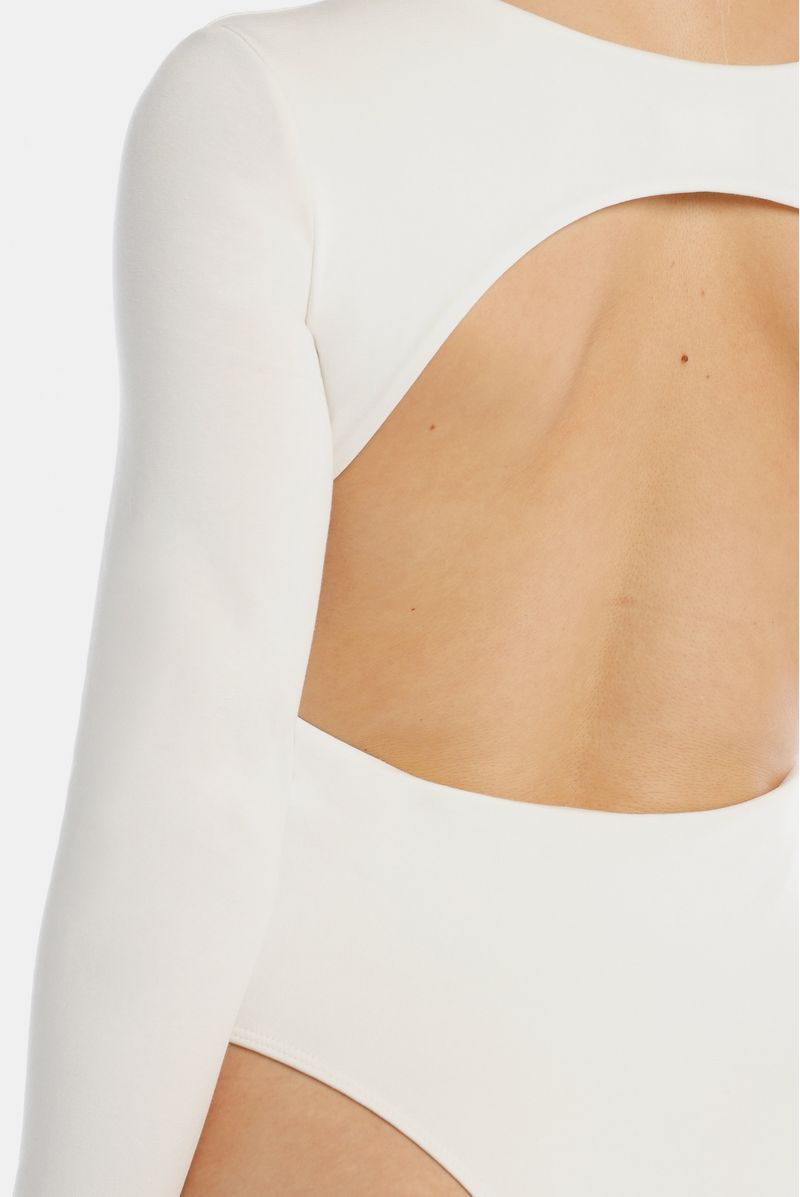 Body manga larga marfil confeccionado en un jersey con elastano de 200 gramos. El Body lleva un escote en la espalda. Toda la prenda es doble y lleva broches en entrepierna.