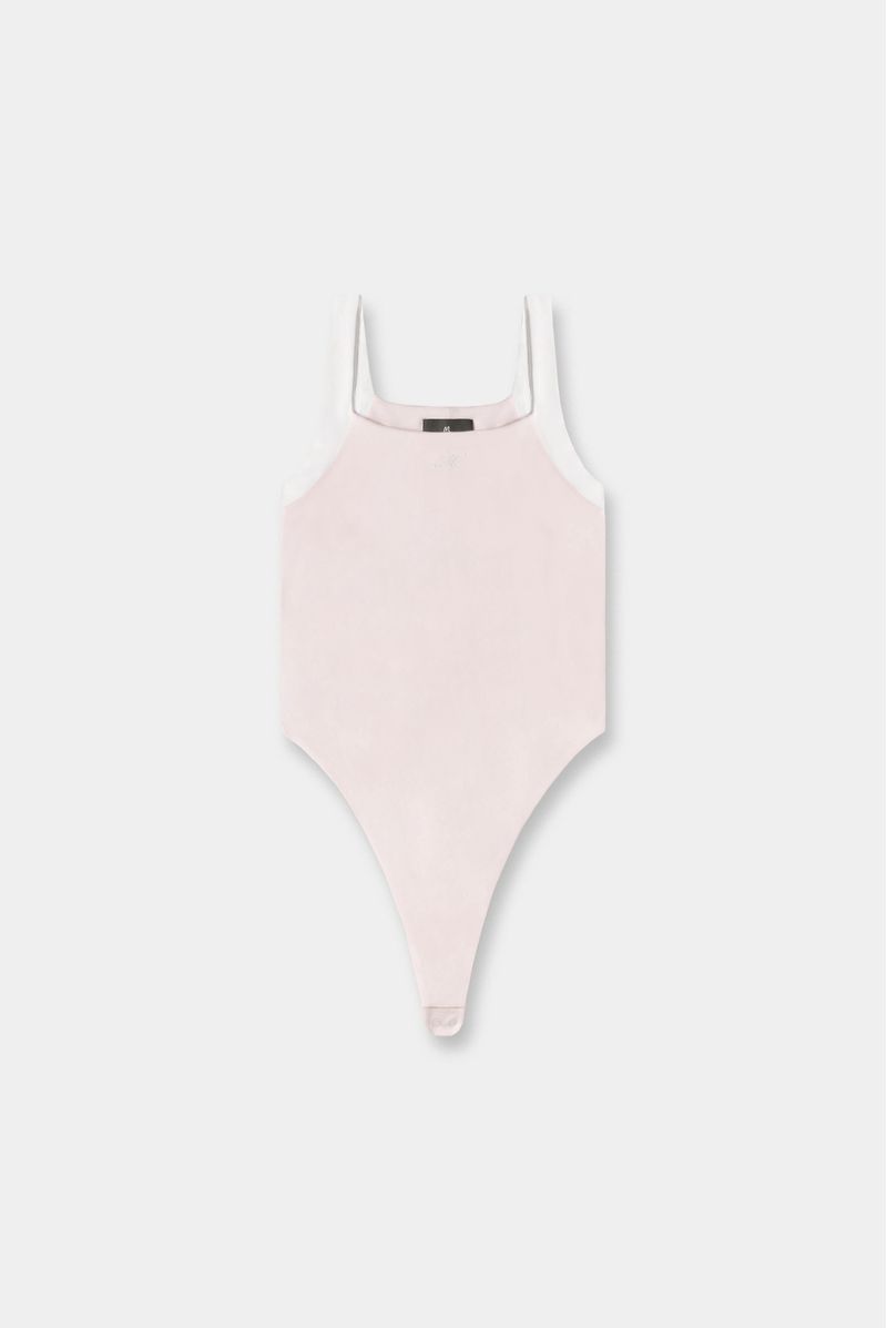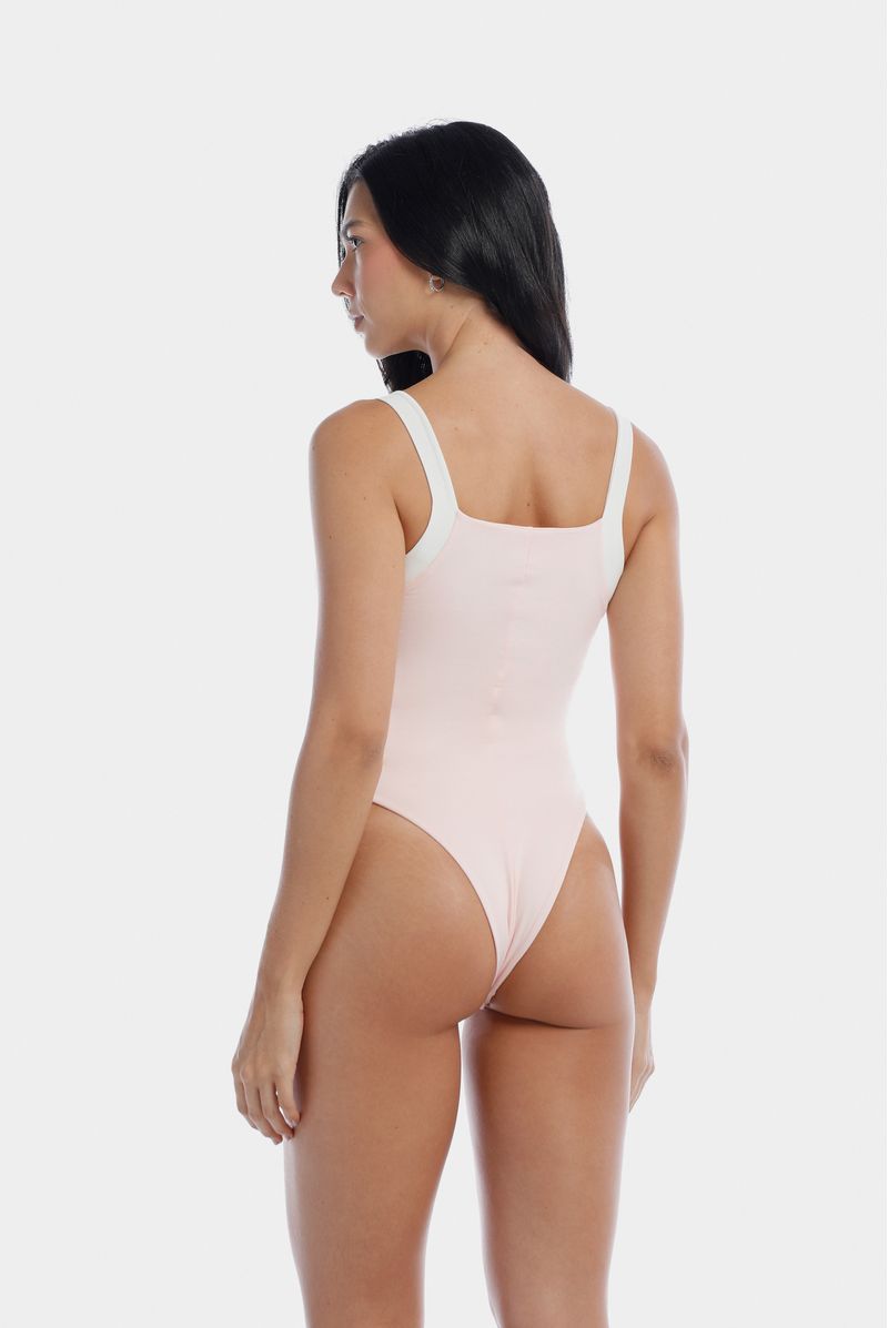 Body rosado jersey con elastano de 200 gramos. Lleva estampación color marfil en centro pecho. Broches en entrepierna. Toda la prenda es doble.