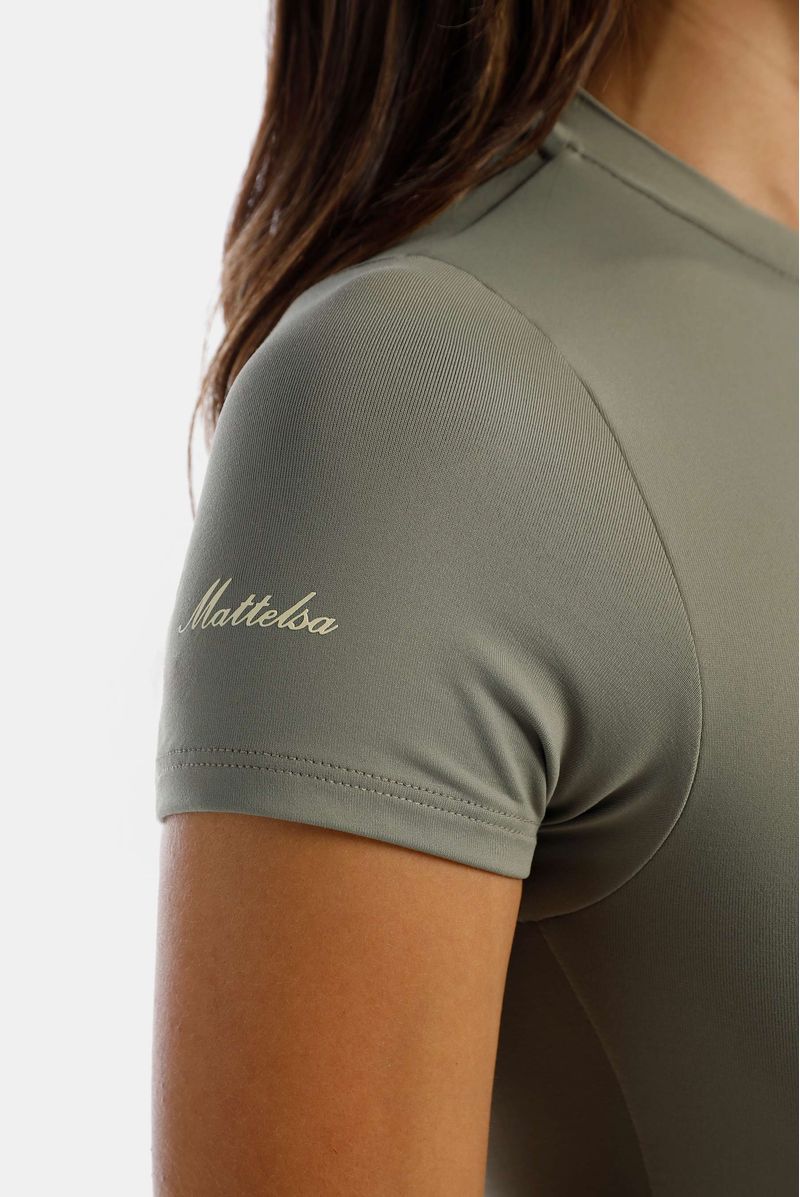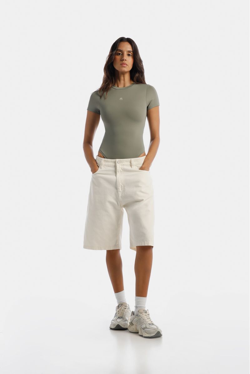 Body manga corta verde confeccionado en un jersey con elastano de 250 gramos. Estampados en frente y espalda en plastisol en alta densidad en color amarillo claro. Prenda es doble en el delantero. Posterior sencillo.