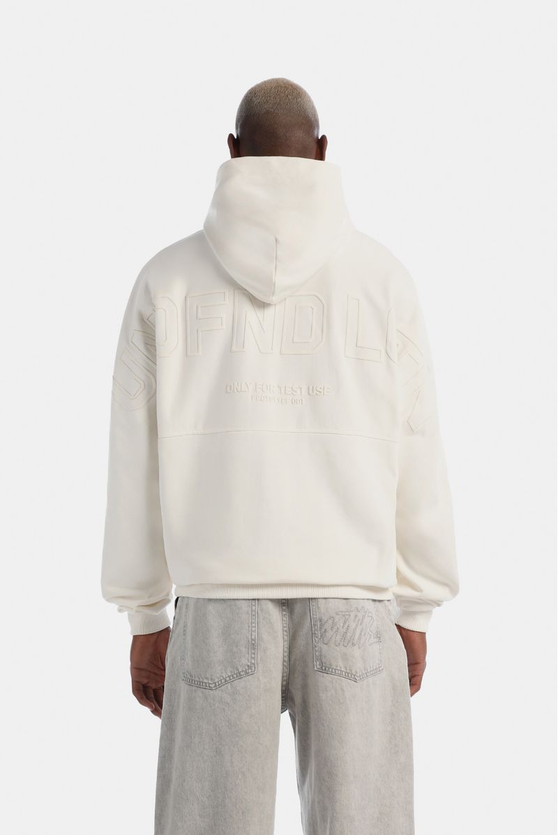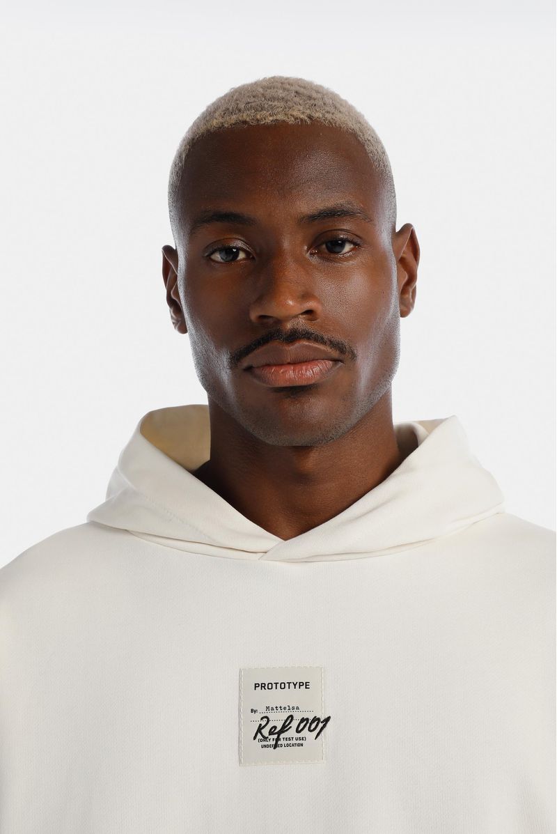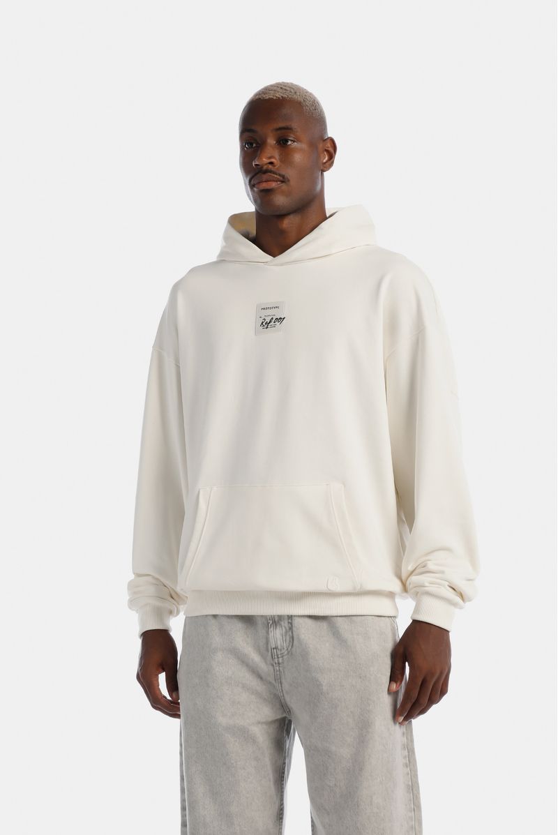 Buzo Oversize confeccionado en una Burda Premium de alto gramaje de 400gr de peso. Tiene estampación utilizando la técnica de Puff, un aplique bordado con el logo de la marca y un banderín bordado. Además lleva un corte en espalda y un banderín.