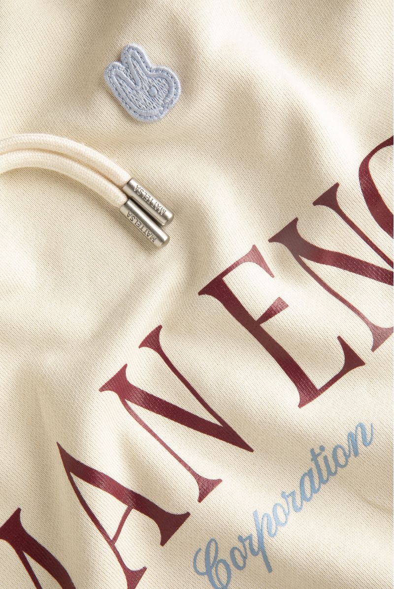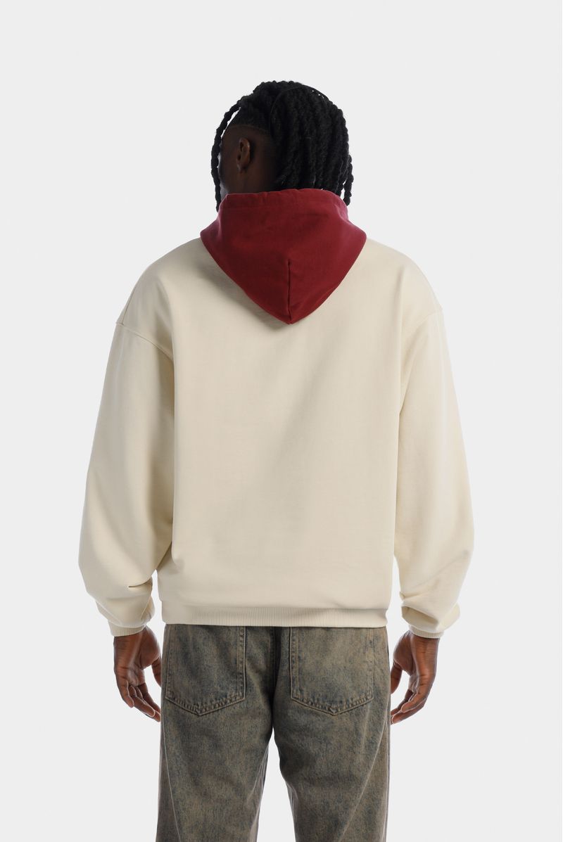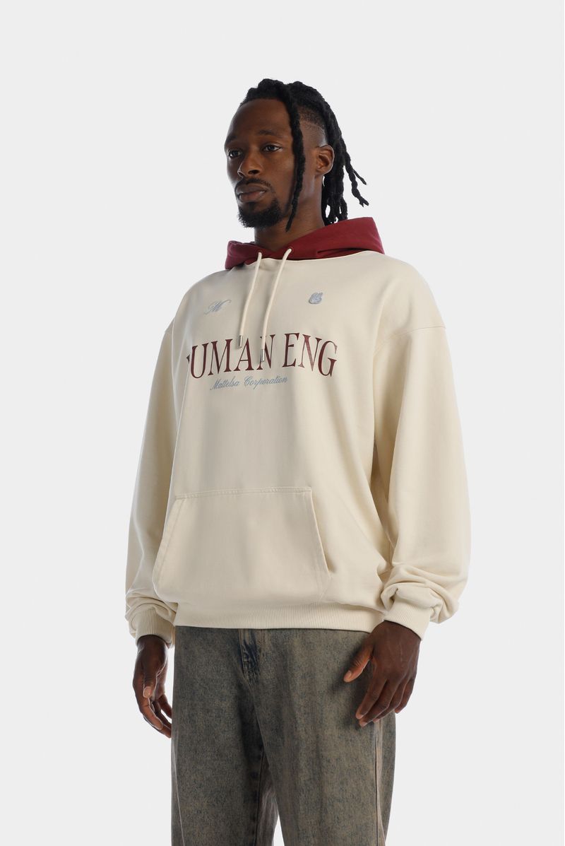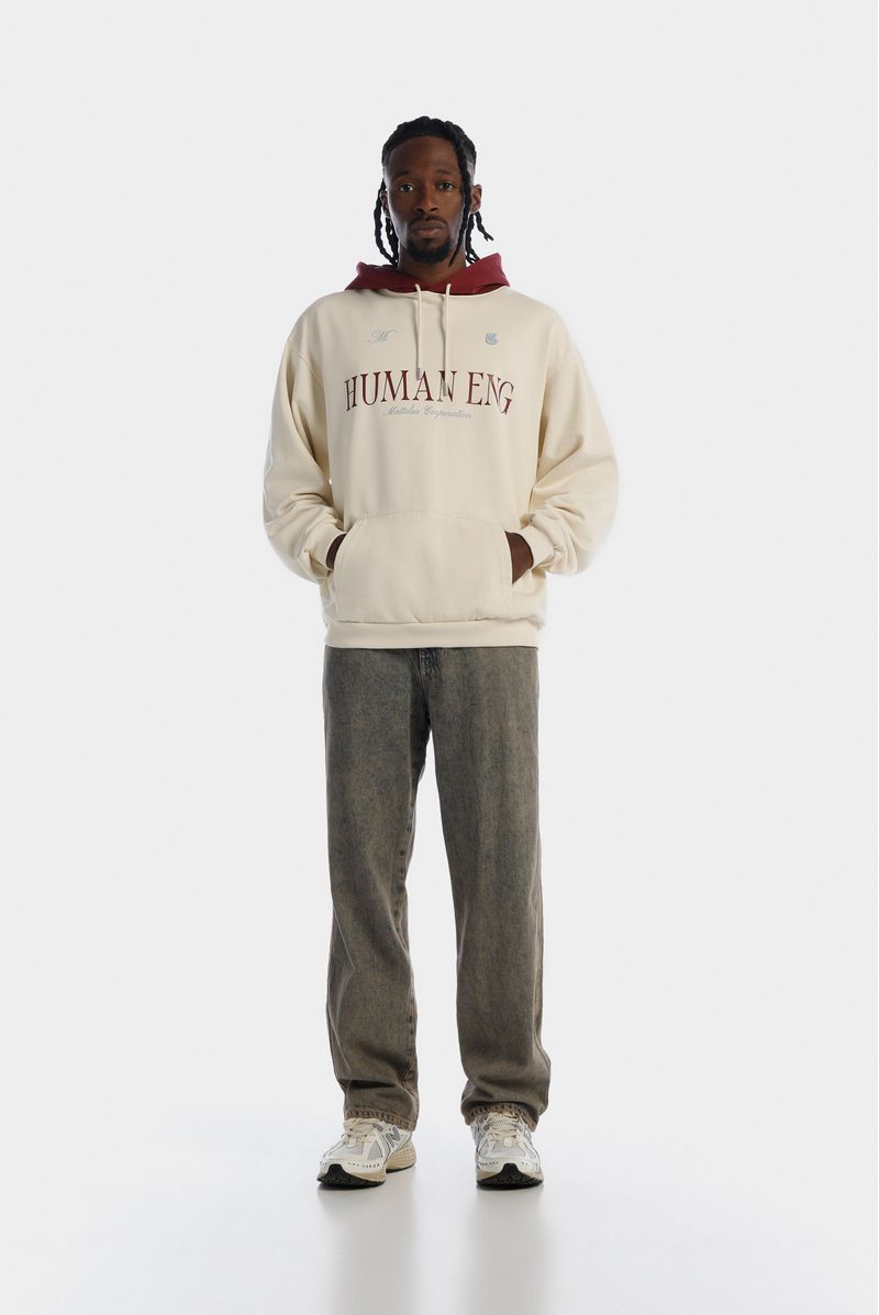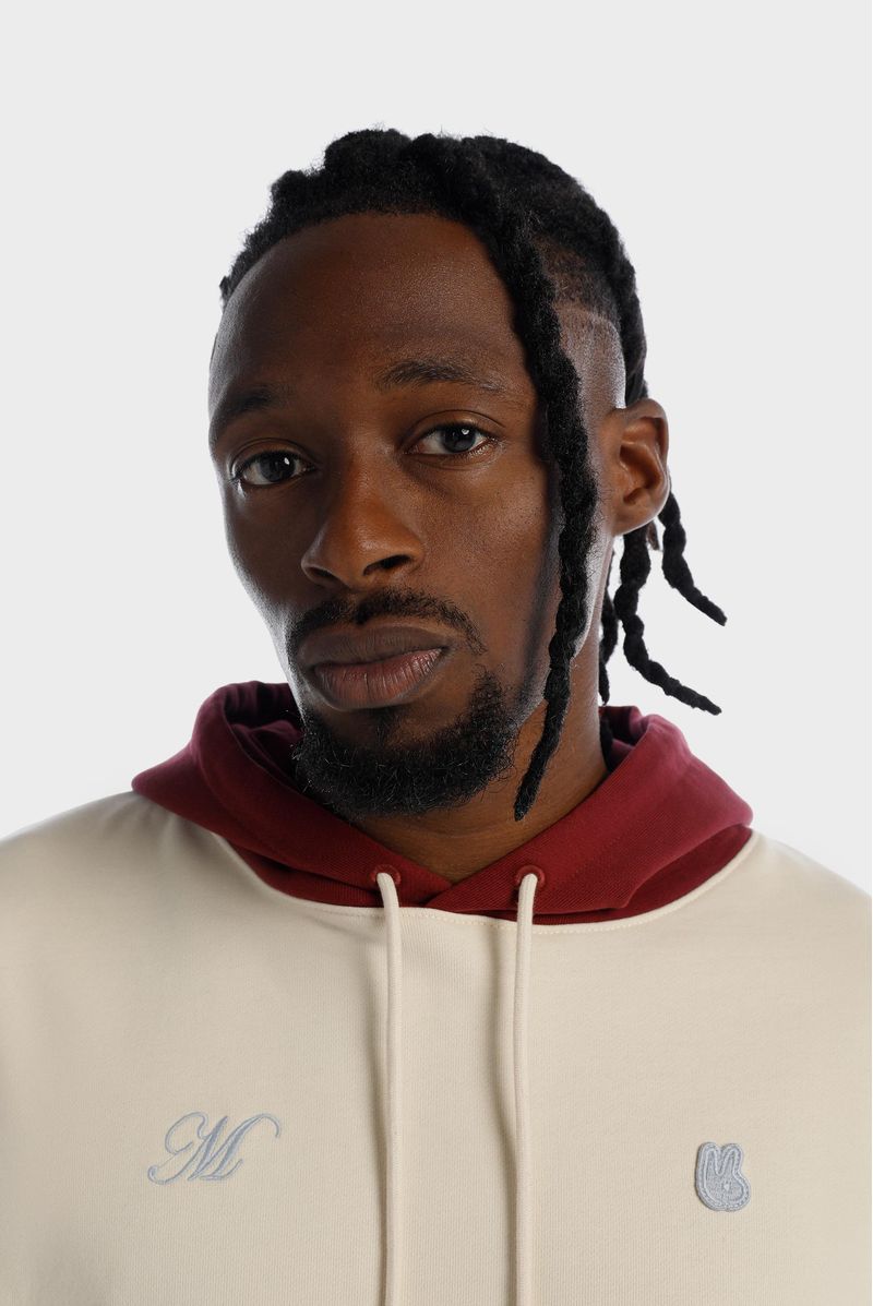 Buzo Oversize confeccionado en una Burda Premium de alto gramaje de 400gr de peso. Con estampación en frente utilizando la técnica de plastisol. Además lleva la letra "M" y un aplique con el logo de la marca bordados. y chompa en contraste.