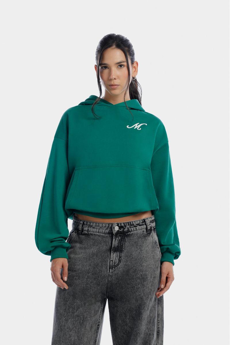 Buzo verde confeccionado en una burda Premium de alto gramaje de 400 gramos. Lleva chompa, bolsillos en el frente y lleva bordado color marfil en el frente y el posterior.
