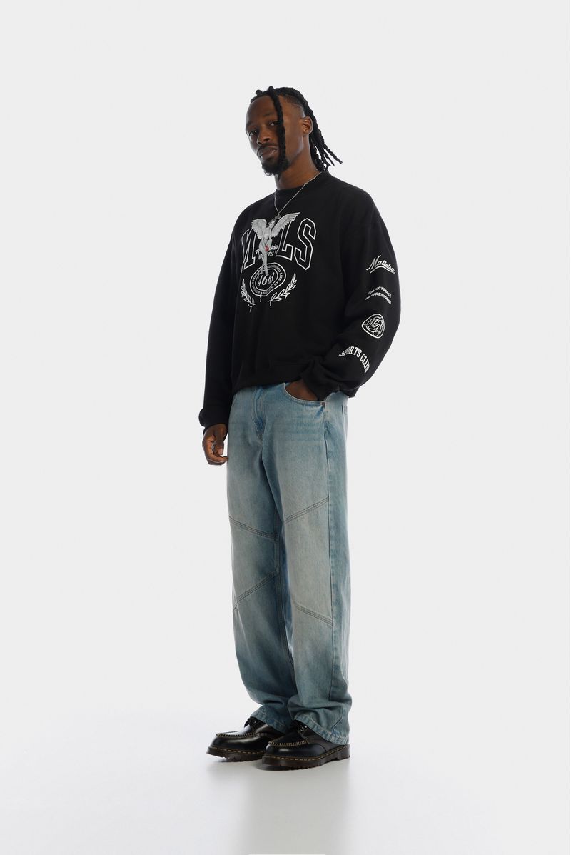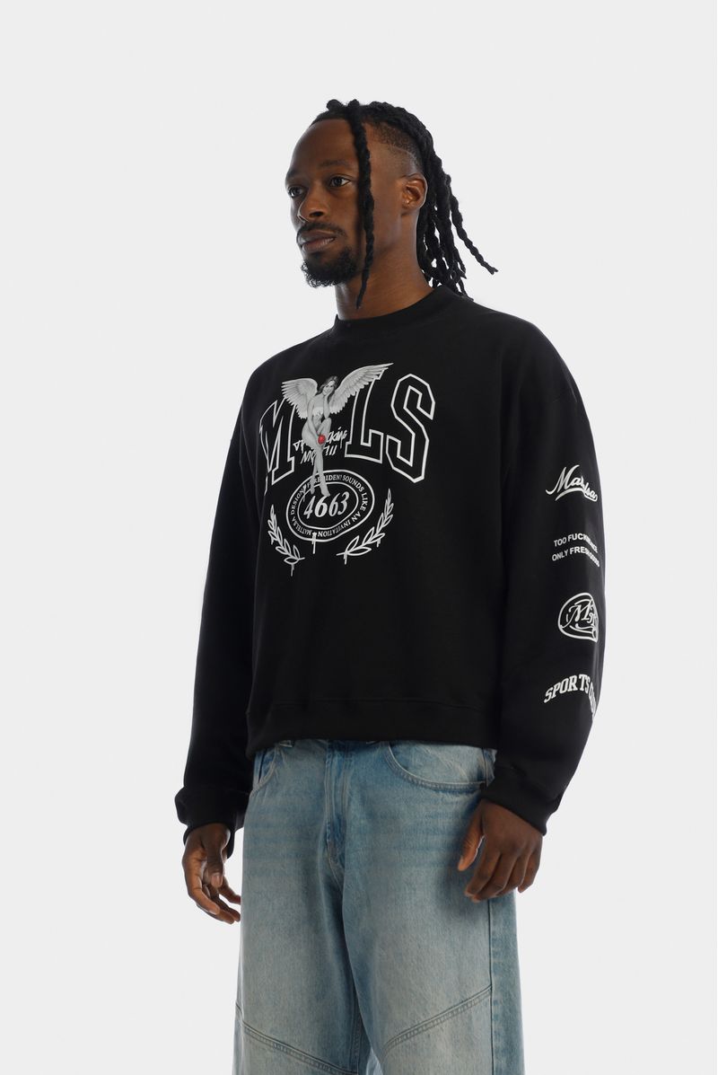 Buzo Pullover Box Fit Negro Ilustración
