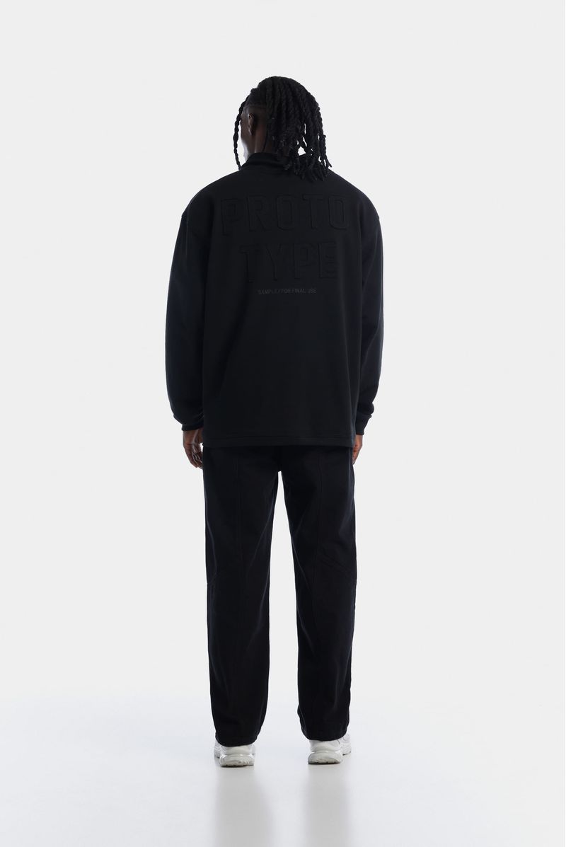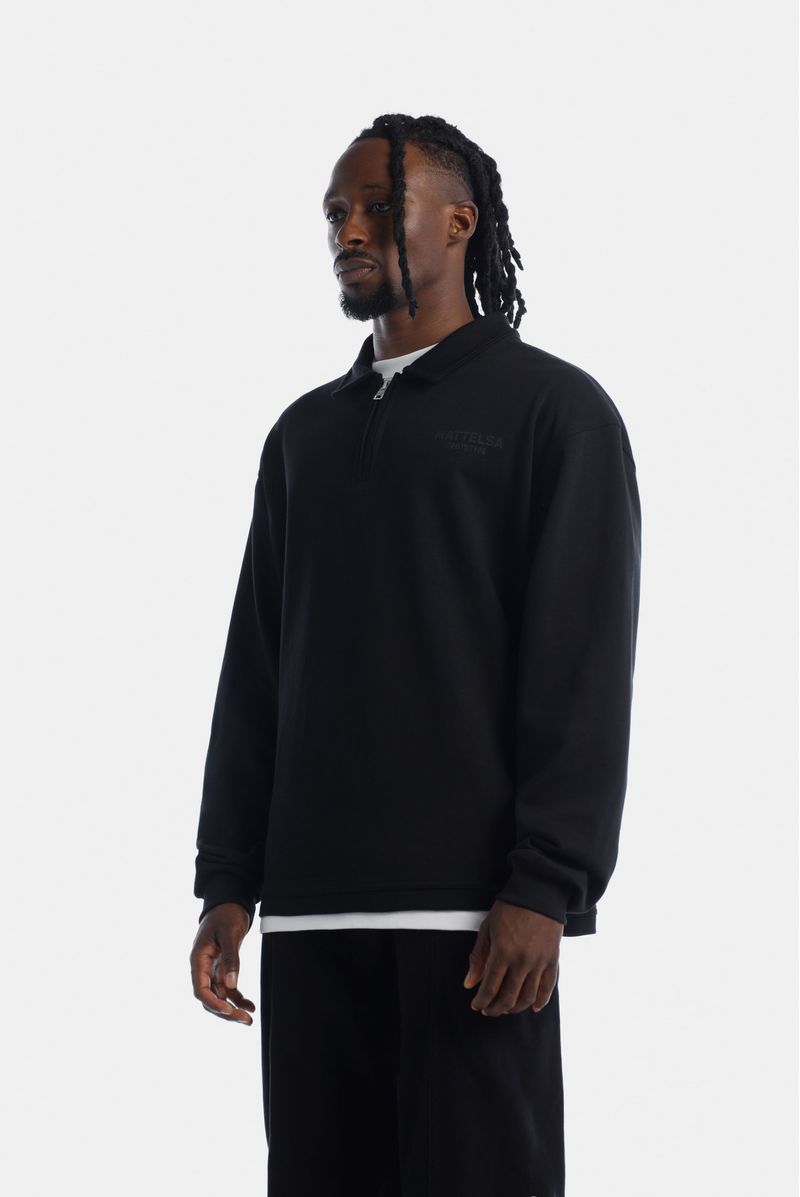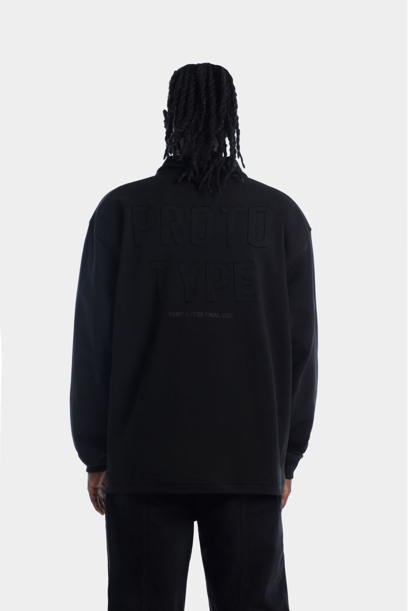 Buzo Pullover Con Cierre Negro Texto