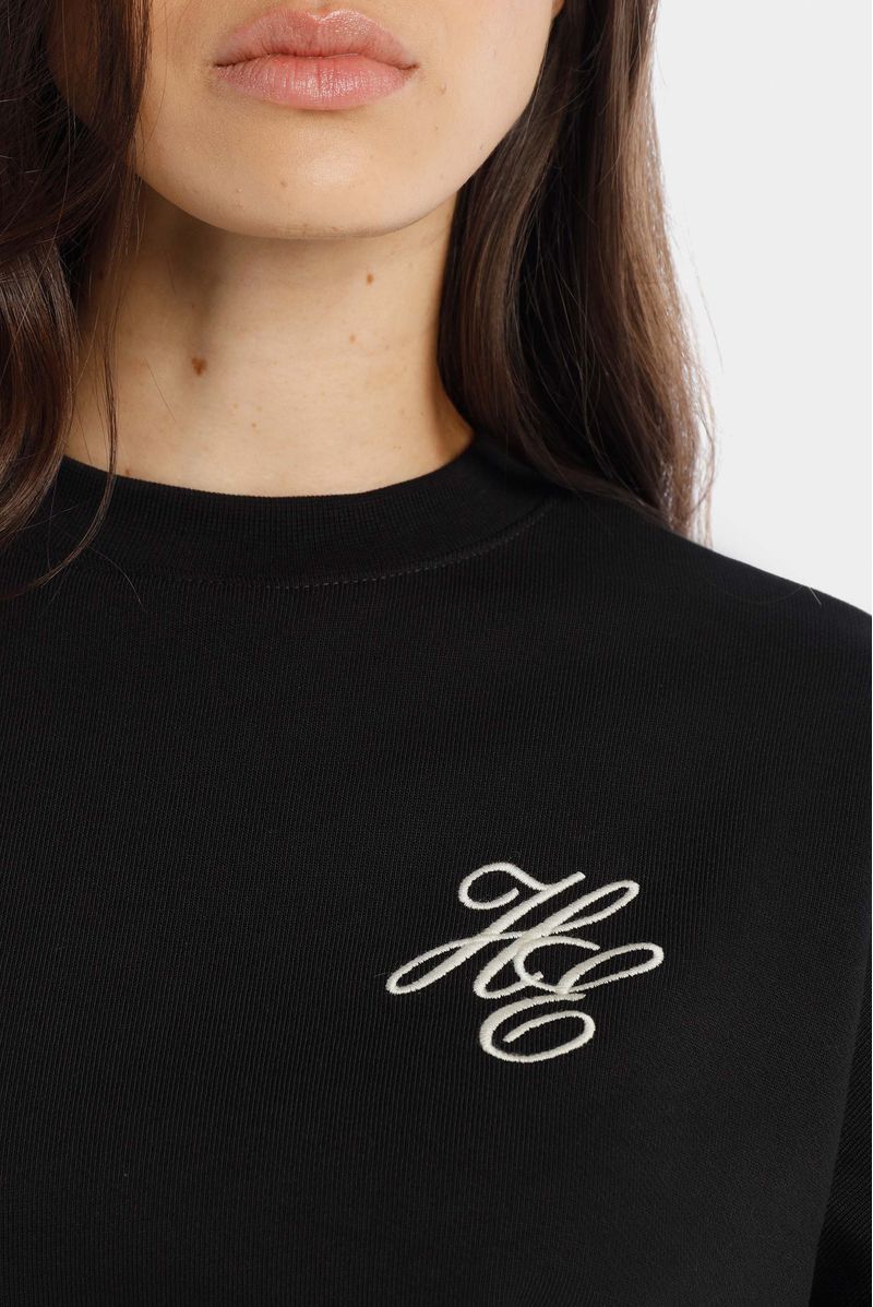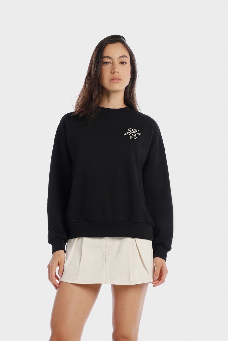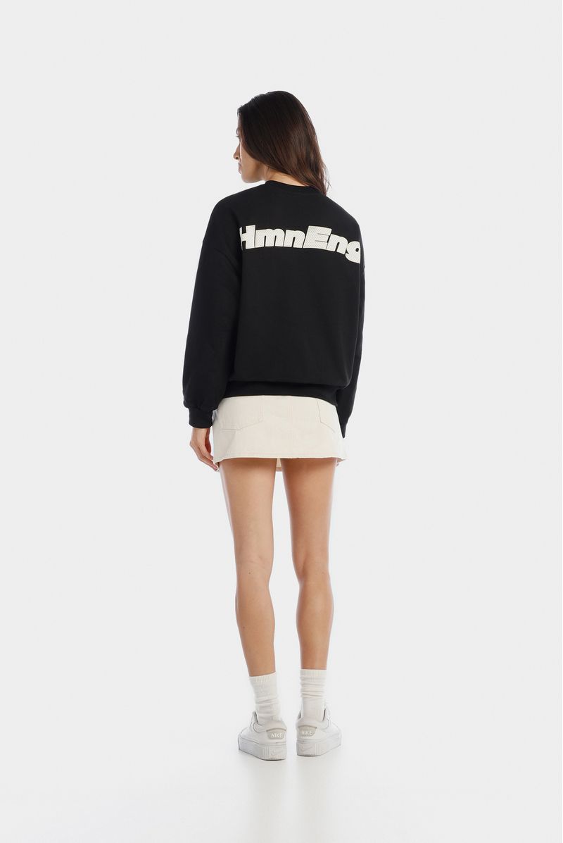 Buzo negro confeccionado en un french terry de 370 gramos. Lleva bordados color marfil en el frente y un texto bordado en gran formato en espalda color marfil.