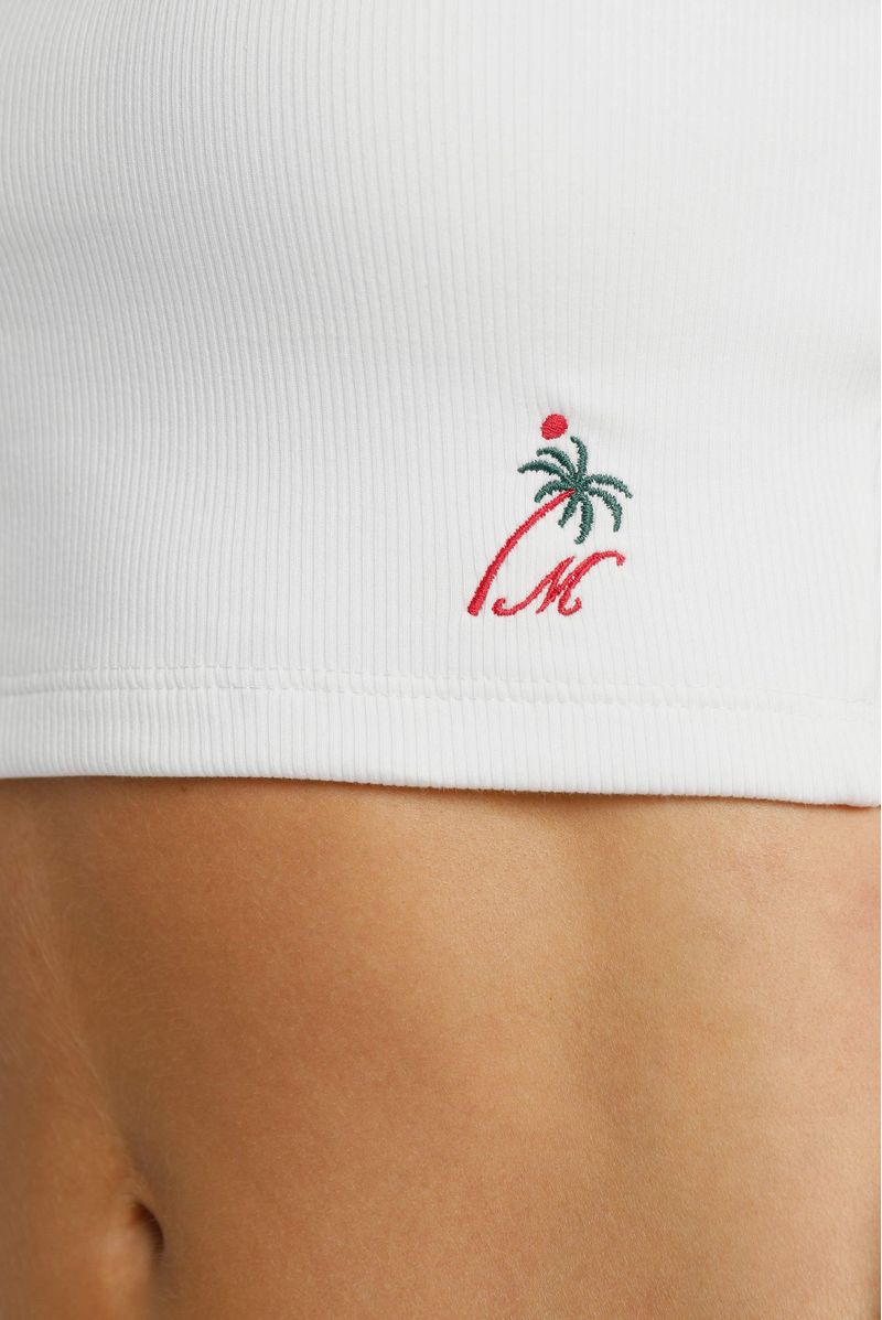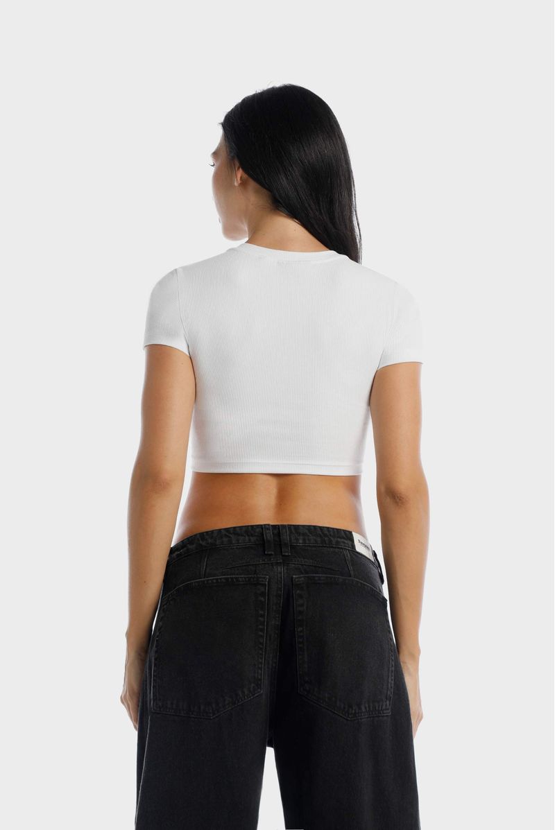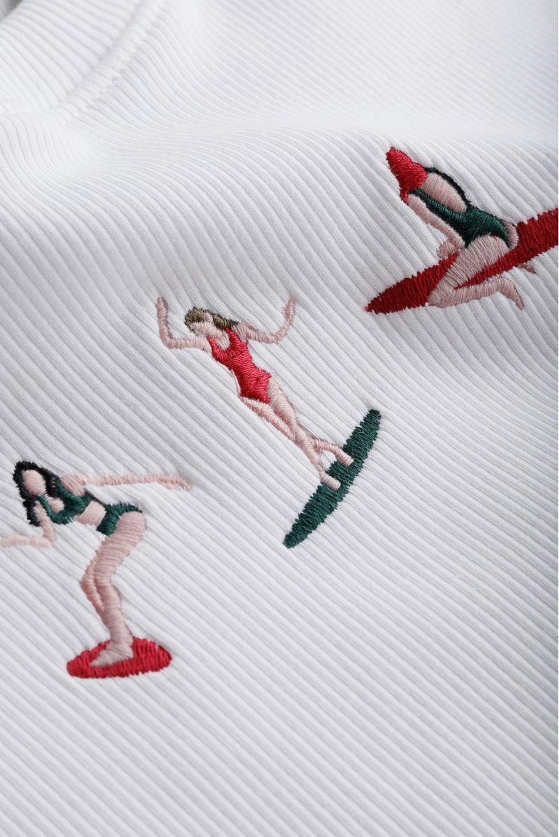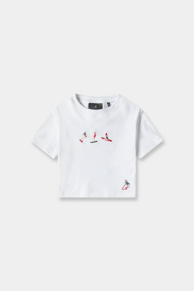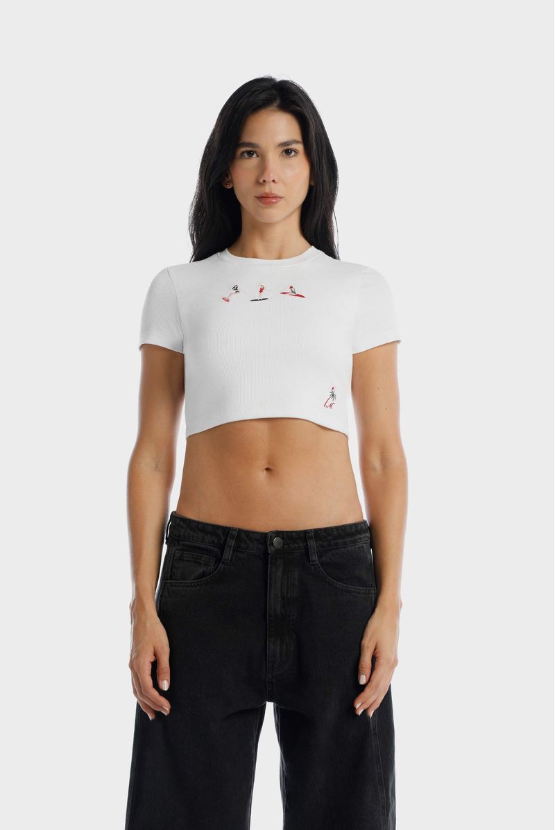 Camiseta marfil confeccionada en un rib de 270 gramos. Lleva varios íconos bordados en el frente.