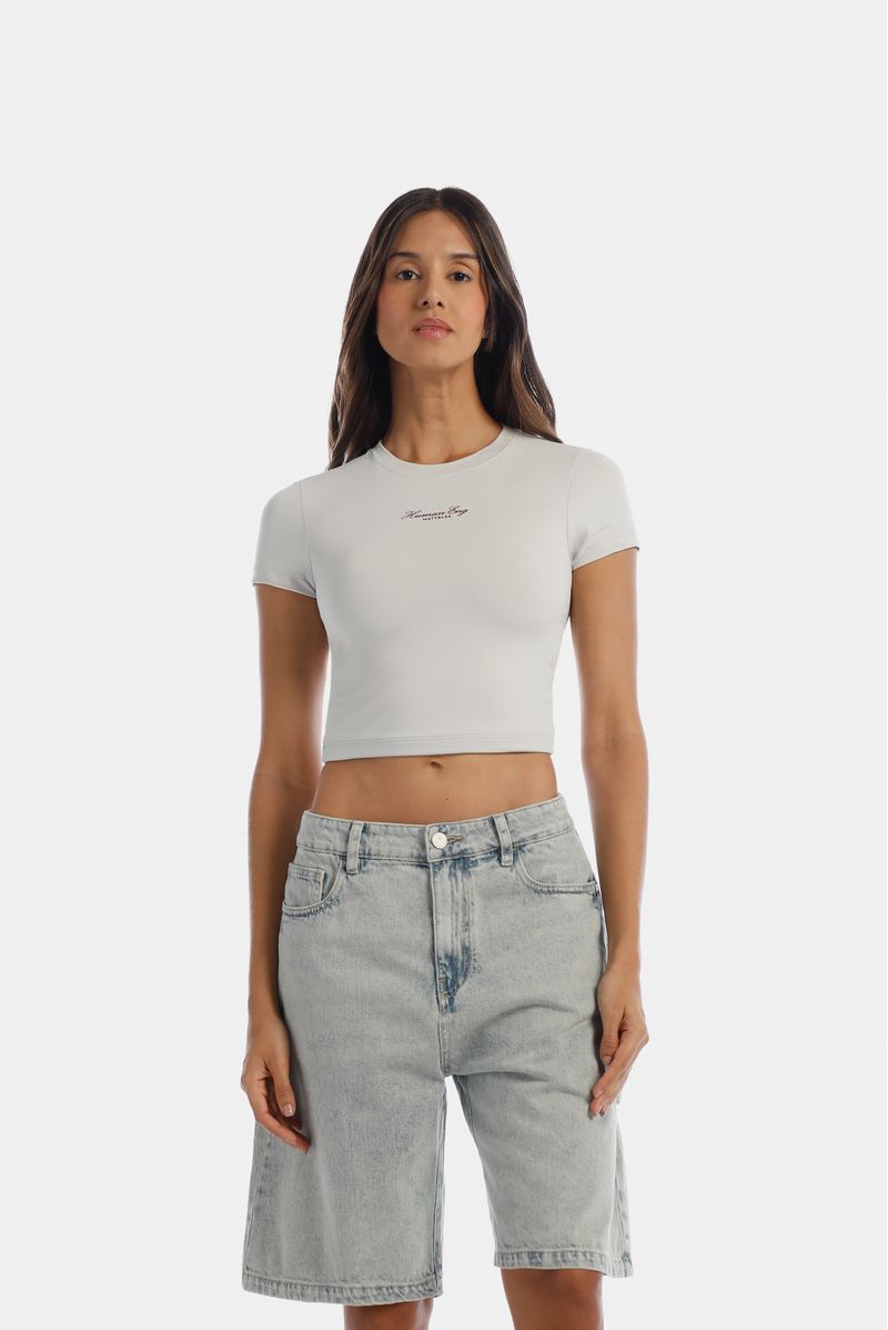 Camiseta Ajustada Gris Texto