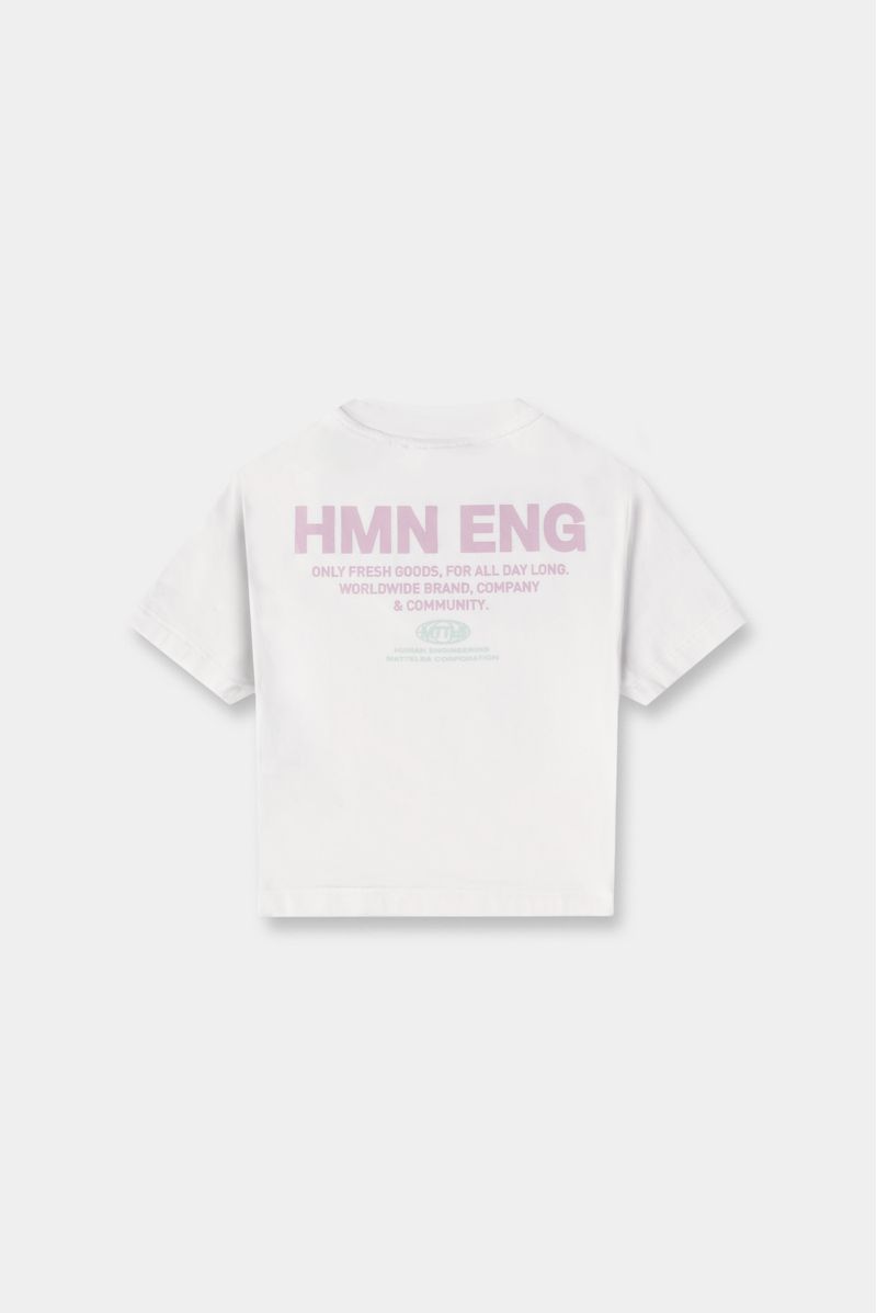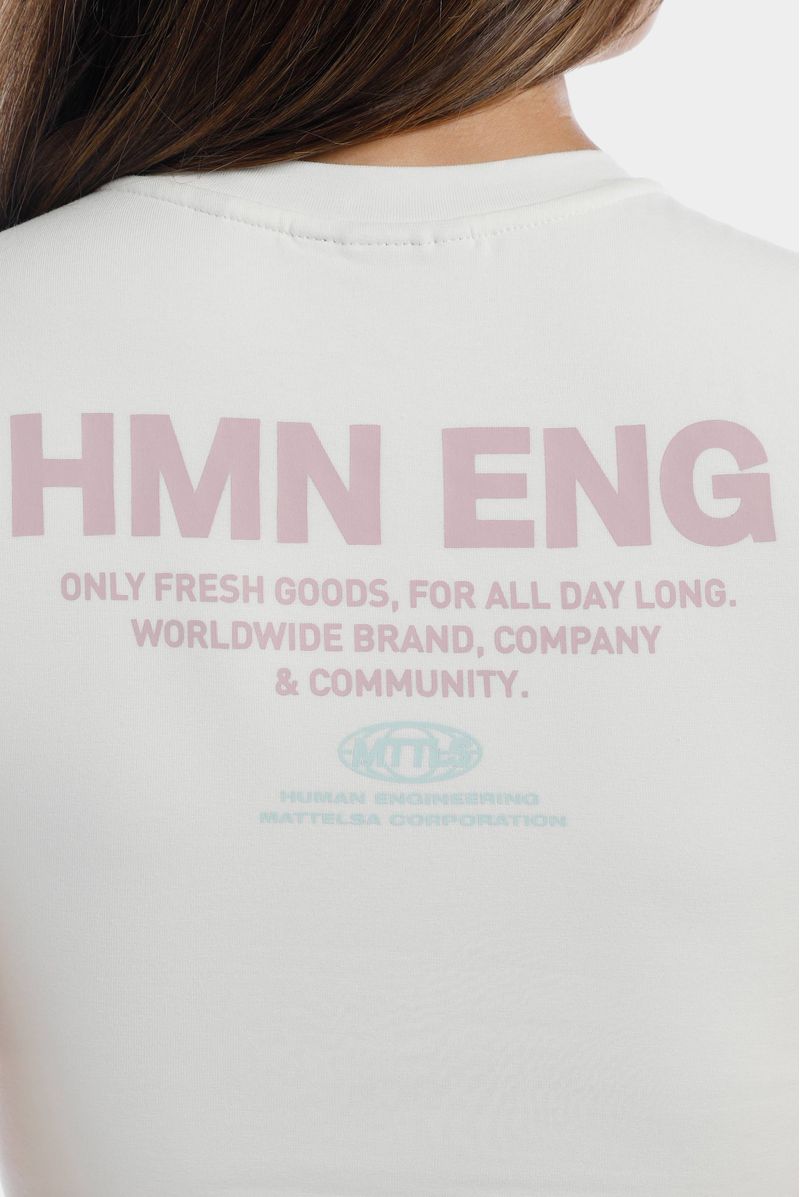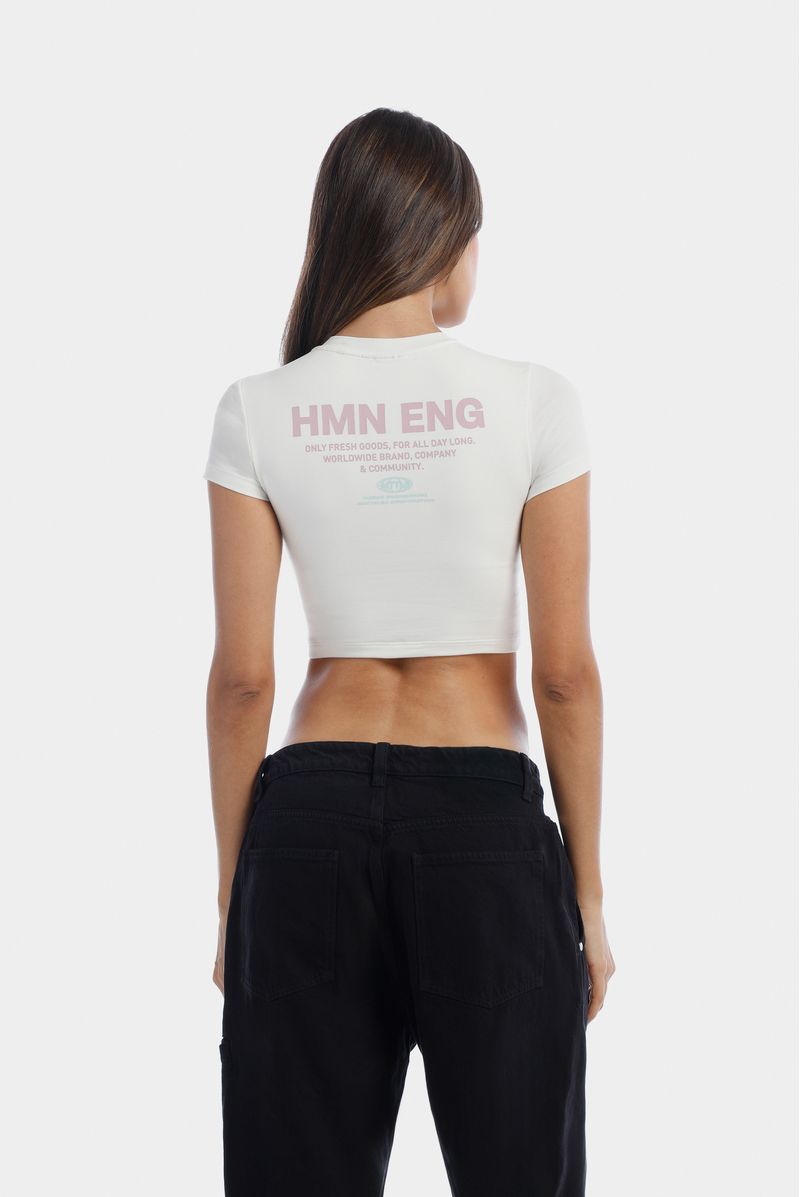 Top marfil confeccionado en un jersey con elastano de 200 gramos. Texto estampado color rosado en el frente.
