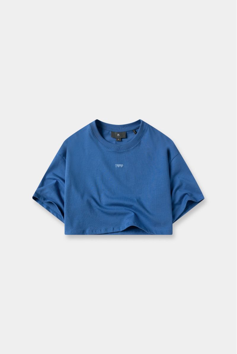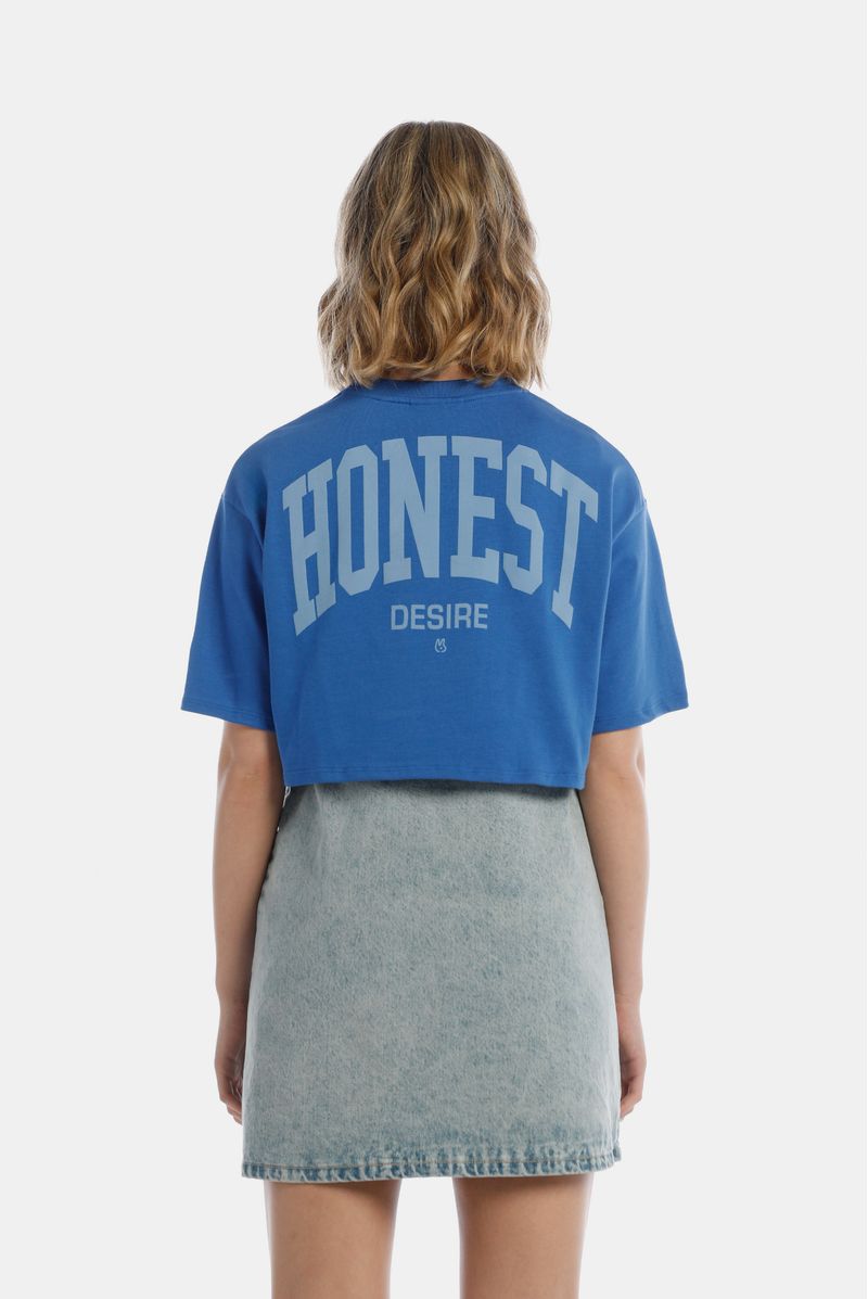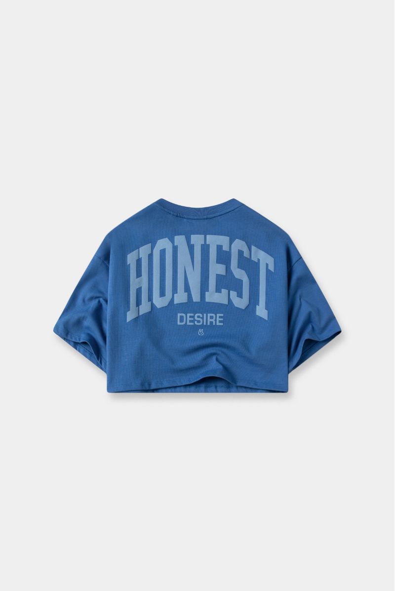 Camiseta Crop Azul Texto