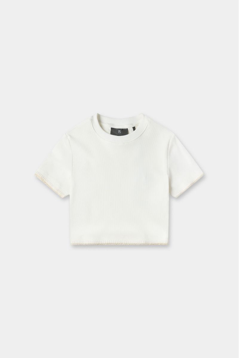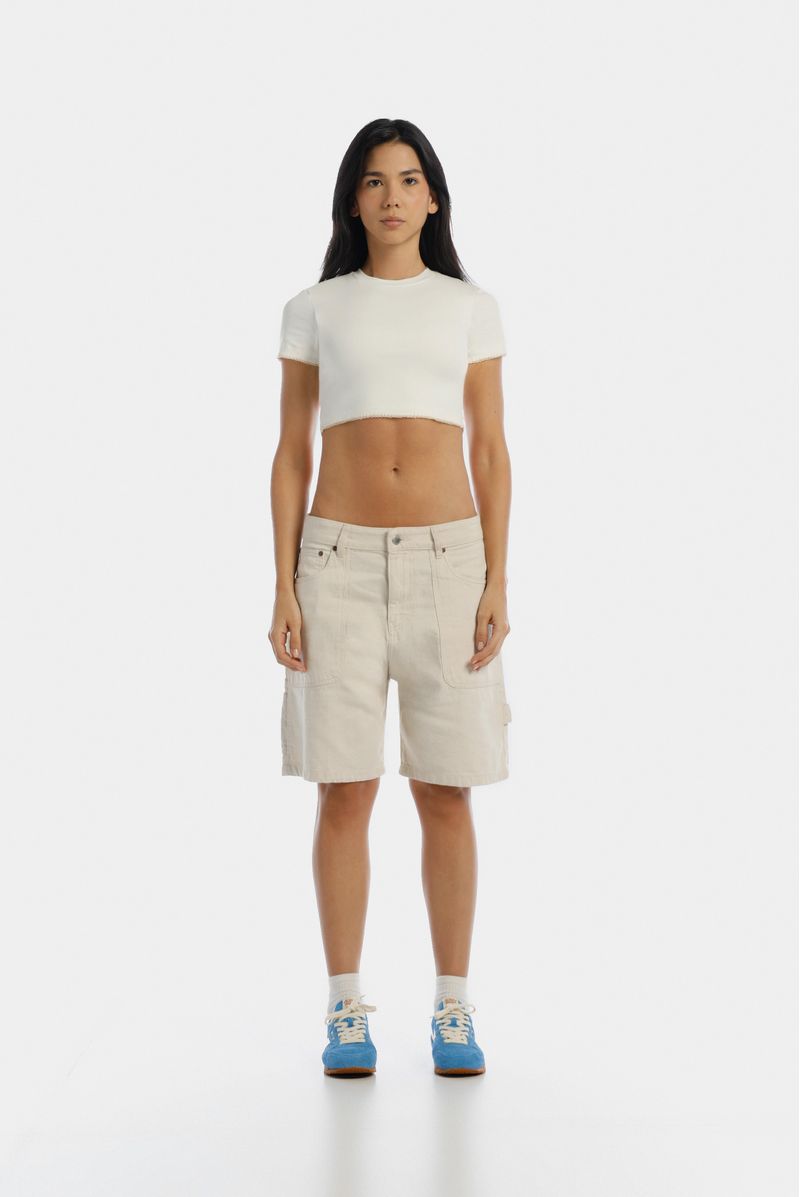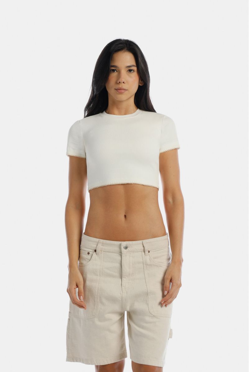Camiseta Crop Marfil Básico