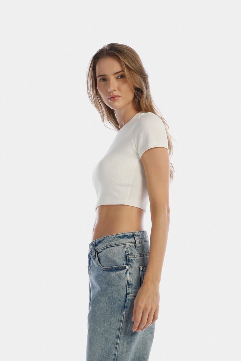 Camiseta Crop Marfil Texto