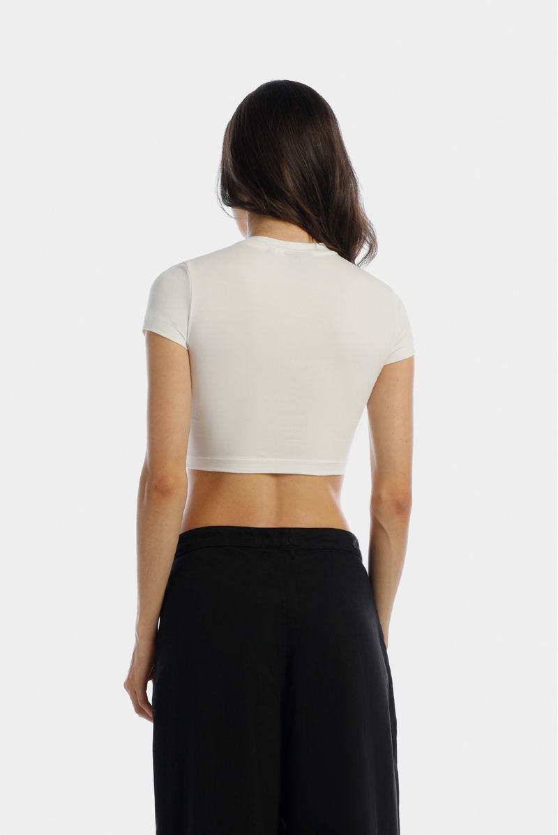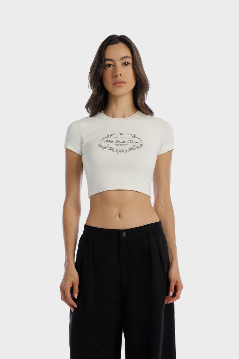 La modelo mide 1.77 y tiene una talla SModel is 5ft 6in/1.77m and wears size SCamiseta CropTexto#f2f1d194%ALGODON/COTTON6% SPANDEX/SPANDEX1