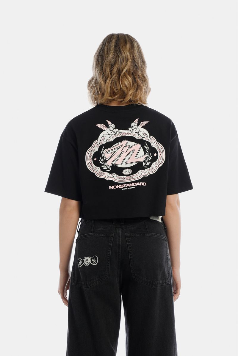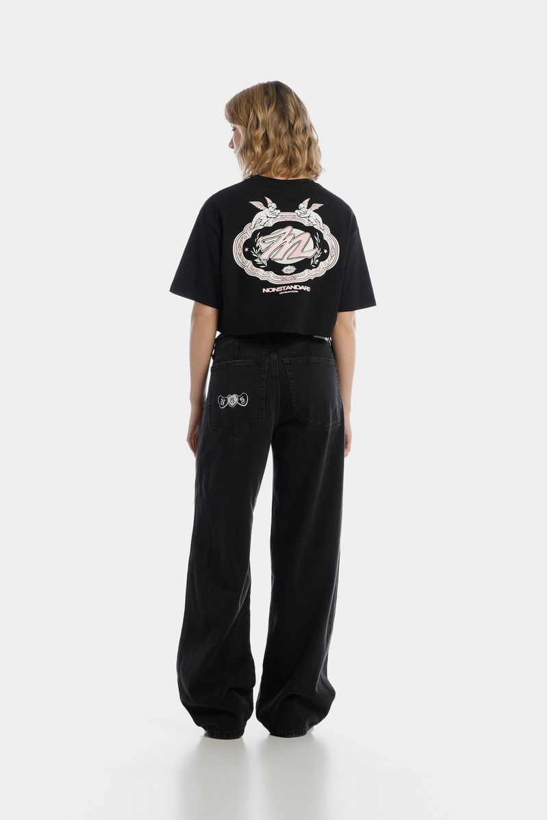 La modelo mide 1.74m y tiene una talla SModel is 5ft 7in/1.74m and wears size SCamiseta CropIlustración#000000100%COTTON/ALGODÓN1