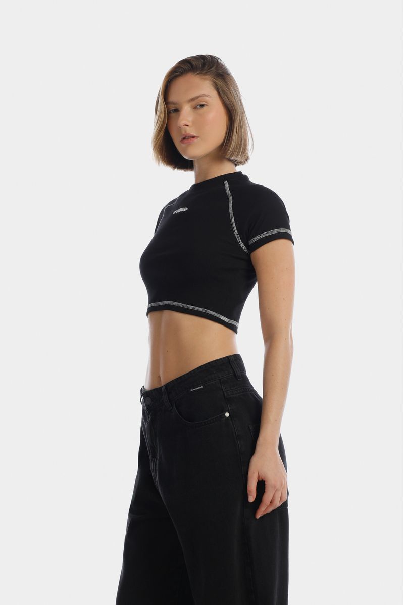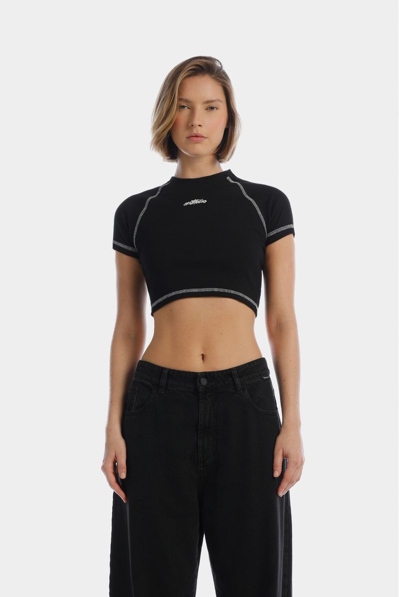 Camiseta Crop Negro Texto