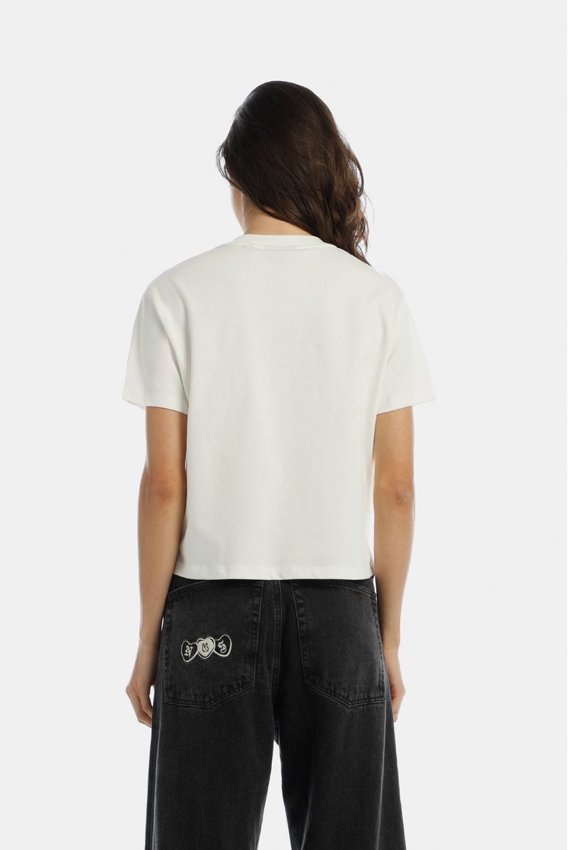 Camiseta marfil, confeccionada en un Jersey 100% Algodón de 250gr. Lleva cuello en Rib 1x1 acanalado y bordado conejo en punto corazón delantero.