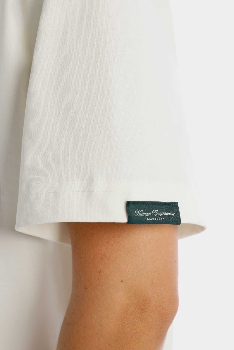 Camiseta Oversize confeccionada en un jersey Premium de 250gr de peso. Con estampación en frente en plastisol y en espalda tiene una ilustración en gran formato. Lleva banderín en ruedo de la manga izquierda.