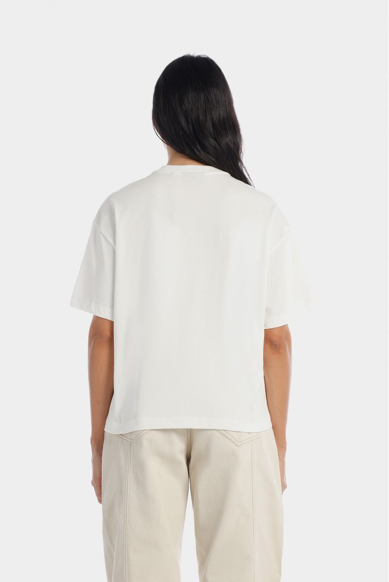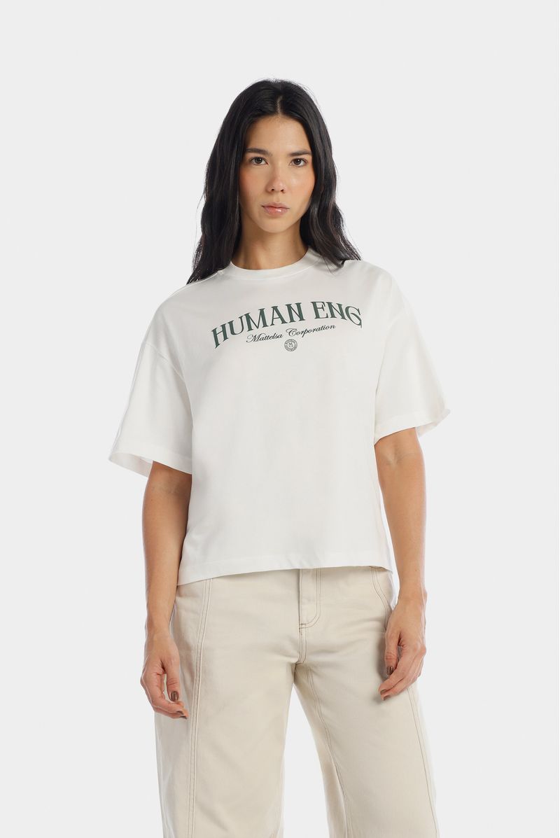 Camiseta marfil confeccionada en un jersey liviano de alta calidad de 175 gramos. Lleva estampación en el frente color verde.