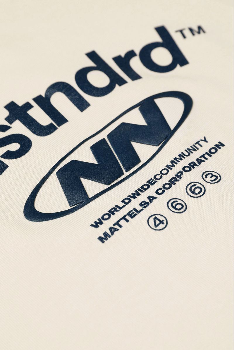 Camiseta Oversize confeccionada en un Jersey Premium de gramaje medio de 200gr de peso. Con estampación en frente y espalda combinando 2 técnicas, plastisol y alta densidad, lo cual le da relieve al texto. Además lleva simbra en hilo en contraste.