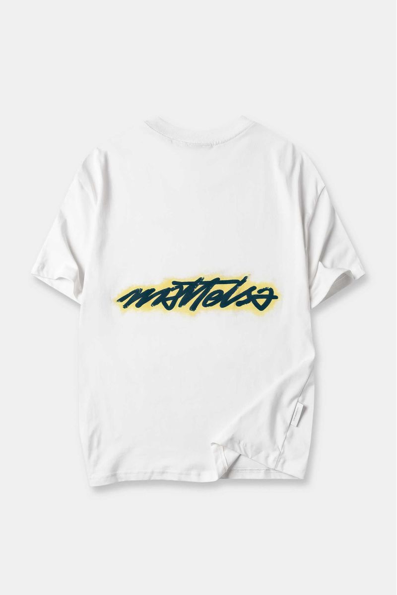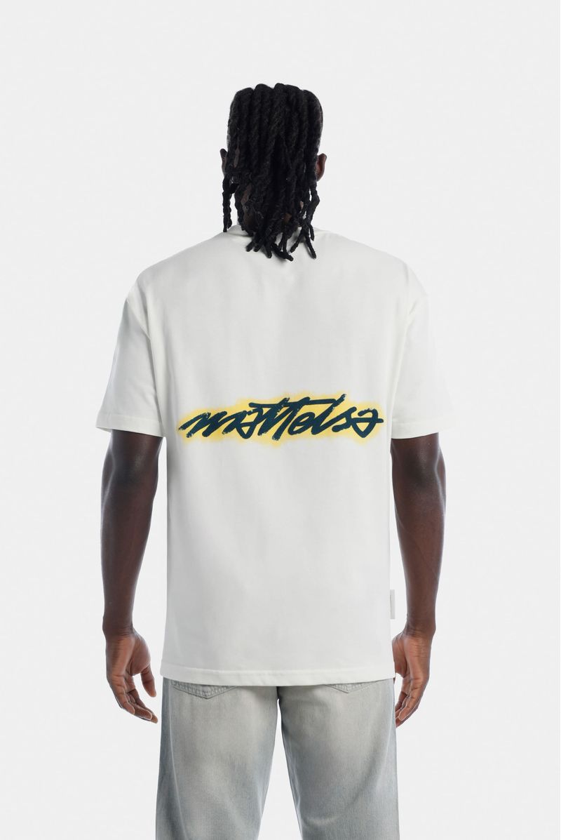 Camiseta Oversize confeccionada en un Jersey Premium de alto gramaje de 250gr de peso. Con estampación en frente utilizando la técnica de flock y en espalda combinando dos técnicas, estampación textil y flock. Además lleva un banderín en costado.