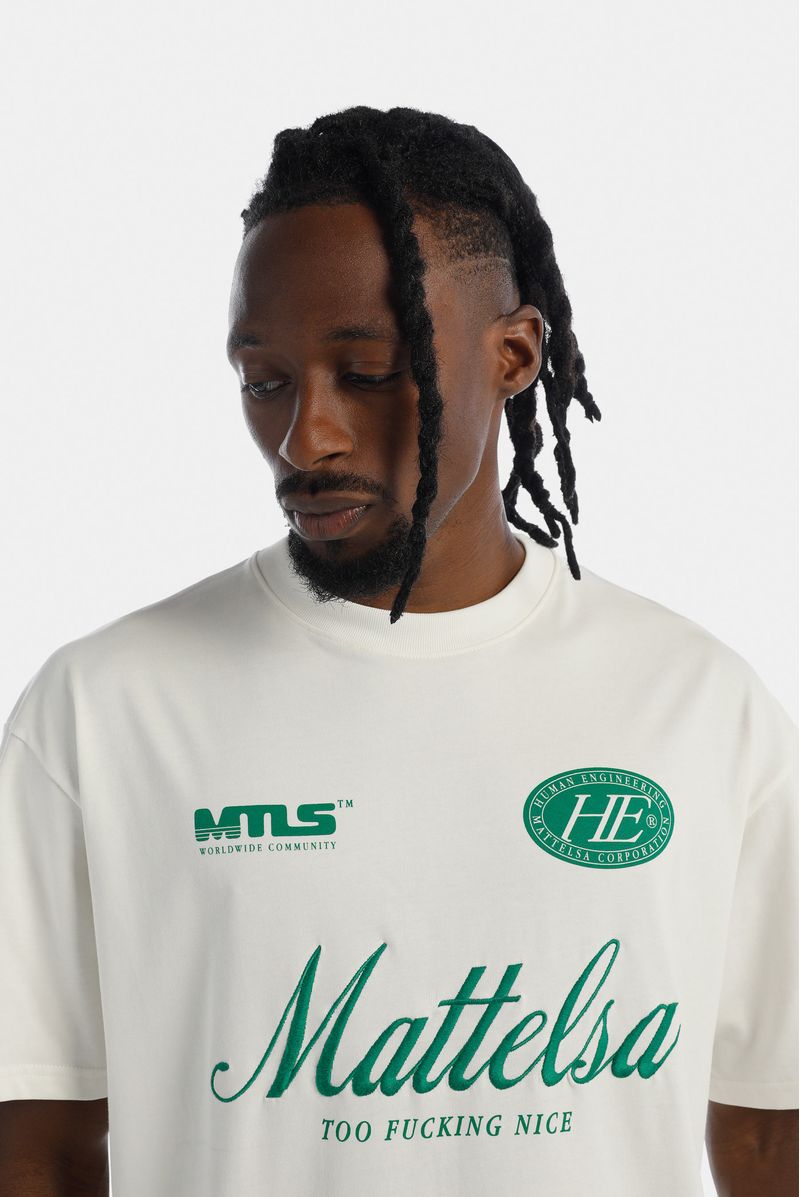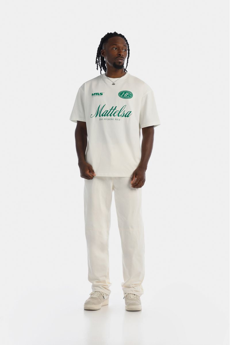 Camiseta Oversize confeccionada en un Jersey Premium de alto gramaje de 250gr de peso. Con bordado y estampación en frente en plastisol. Ademas lleva un banderin en ruedo.