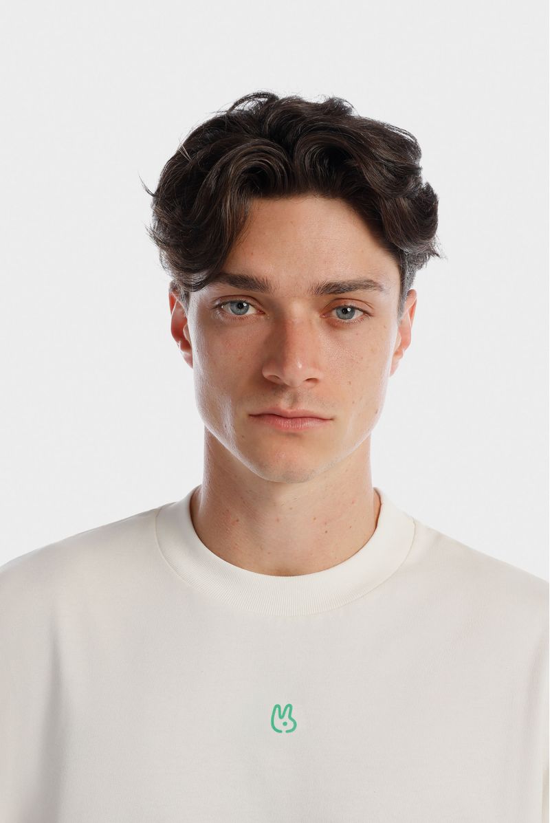 El modelo mide 1.90m y tiene una talla LModel is 6ft 2in/1.90m and wears size LCamiseta OversizeTexto#f2f1d1250100% AlgodónAlto GramajeTela PremiumOversize100%ALGODON/COTTON100%ALGODON/COTTON1