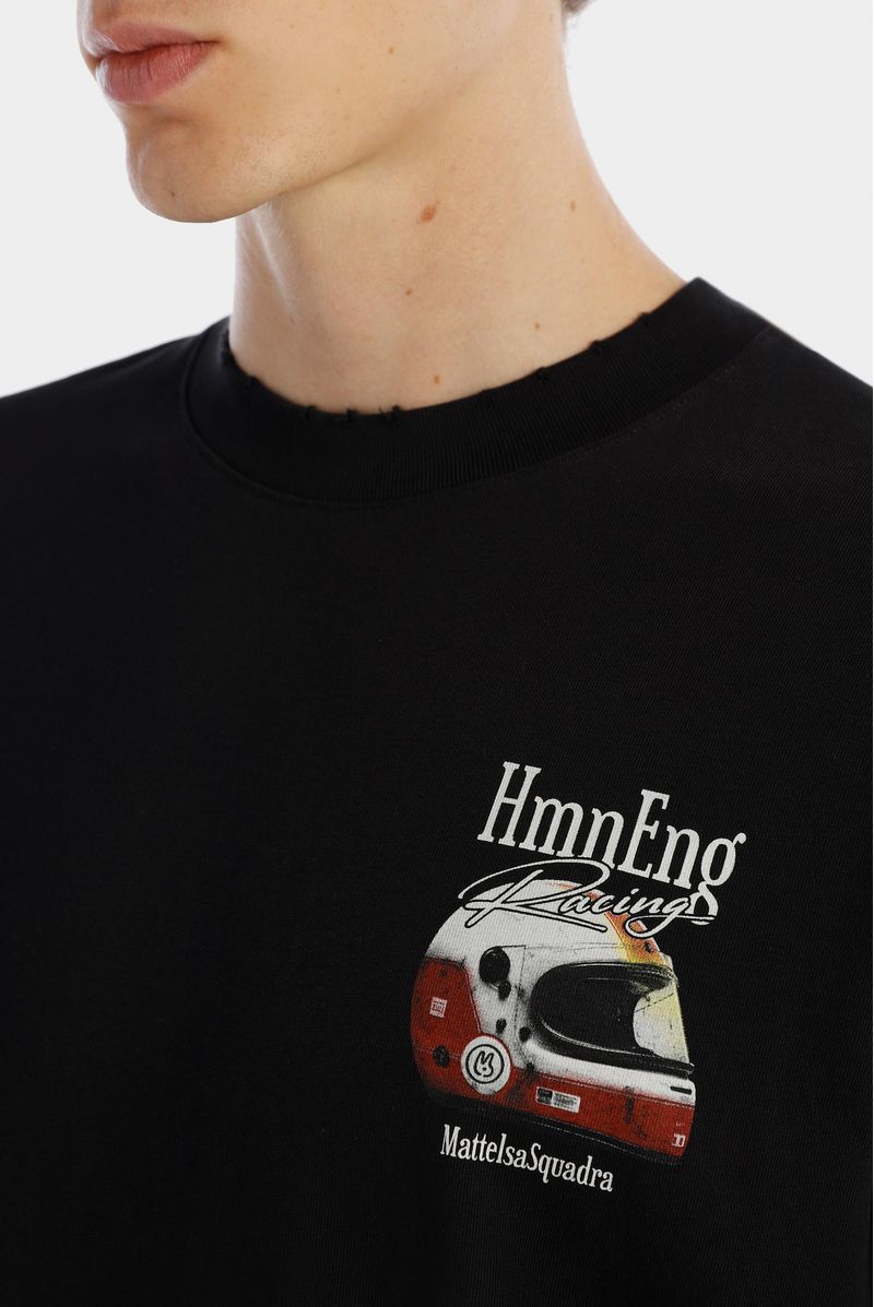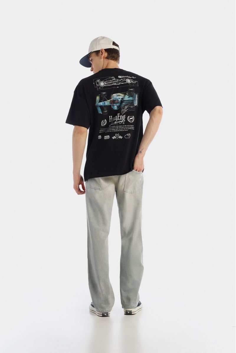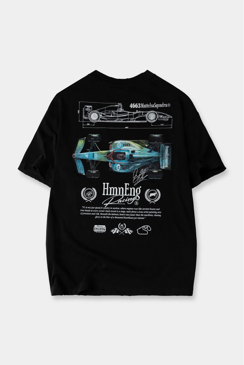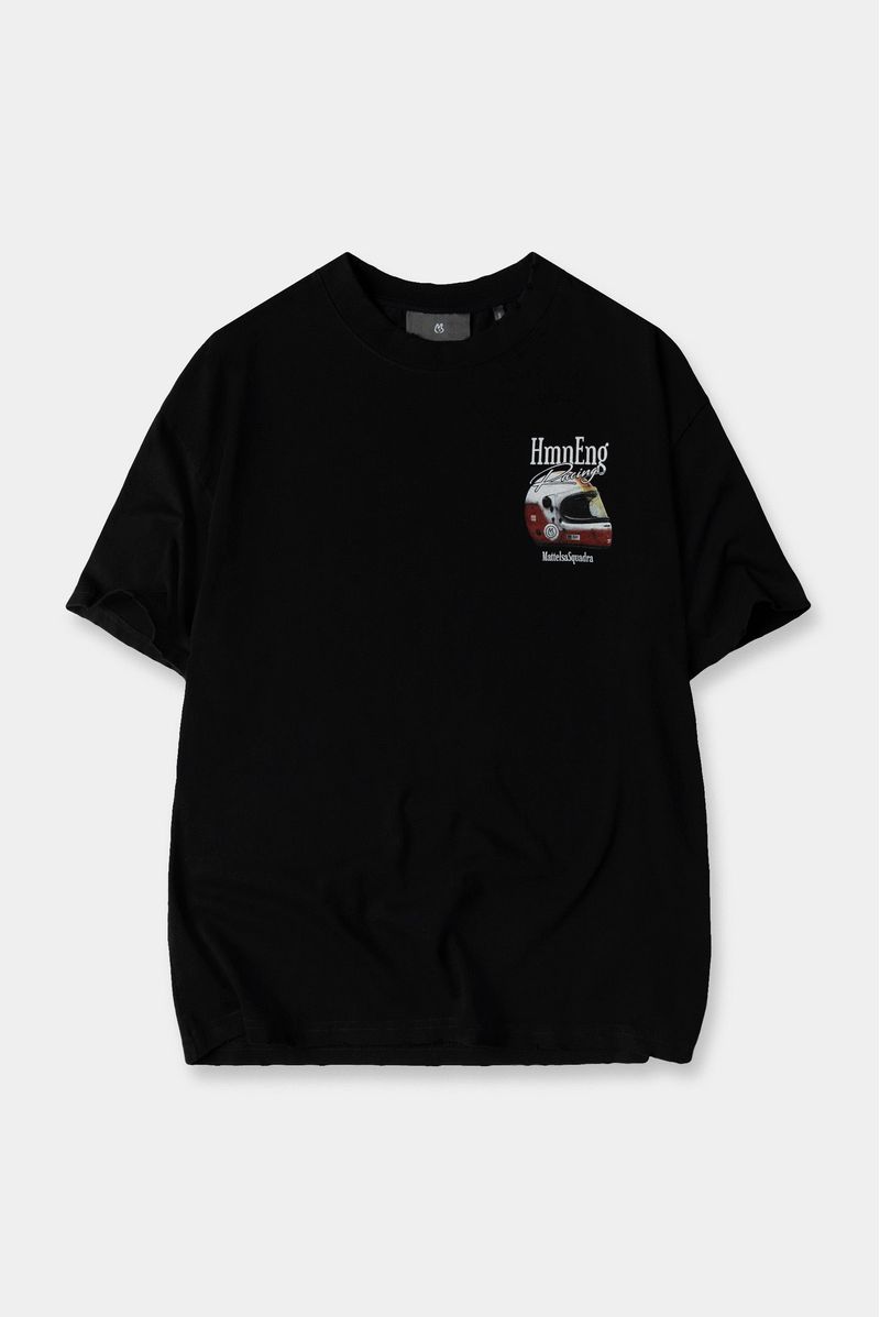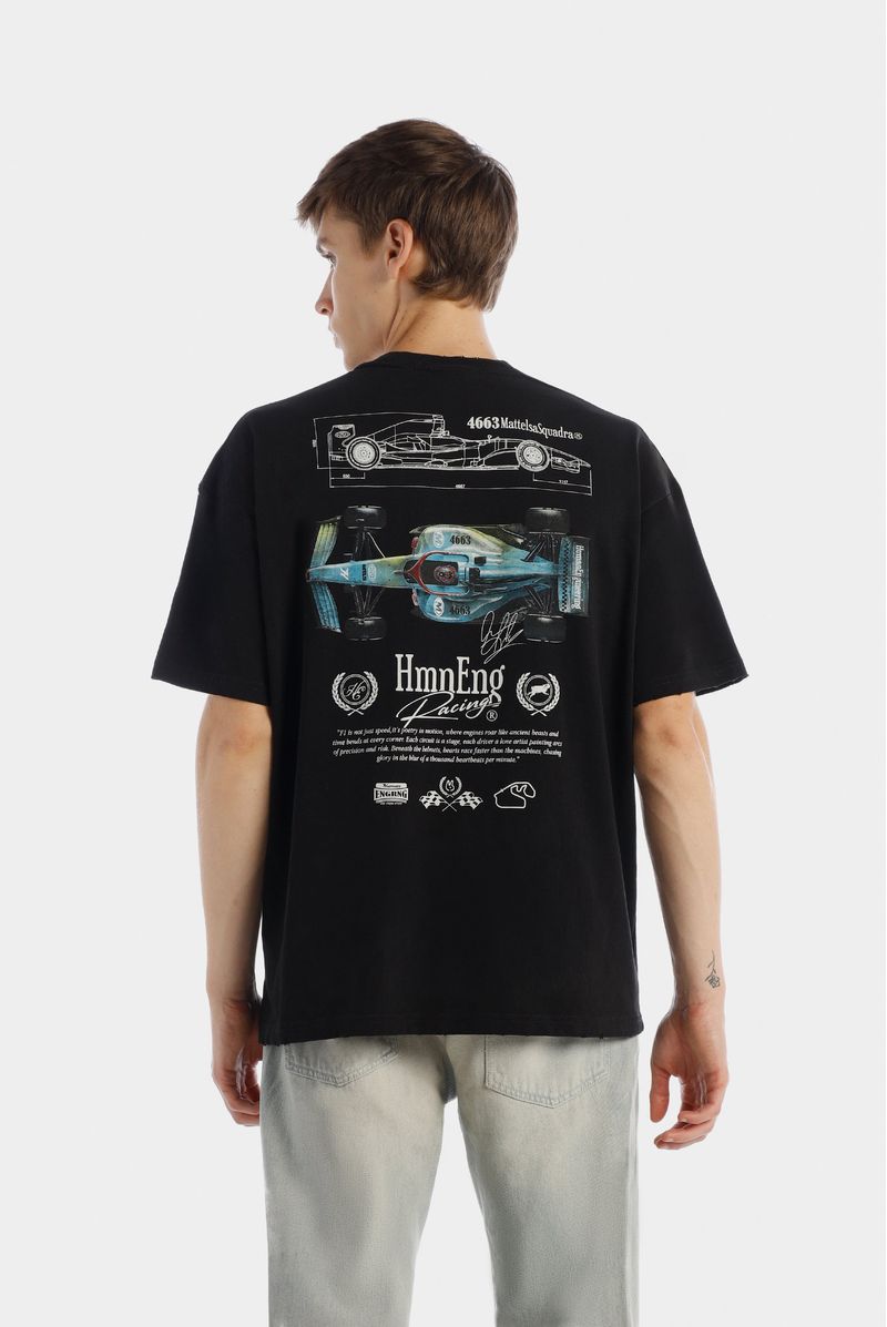Camiseta Oversize confeccionada en un Jersey Premium de alto gramaje de 260gr de peso. Con estampación en frente y espalda utilizando la técnica de plastisol. Además lleva ruedos rústicos con acabado en motortul