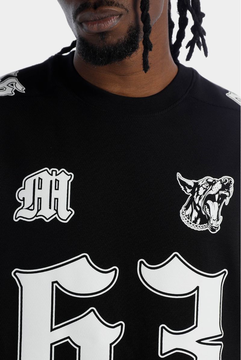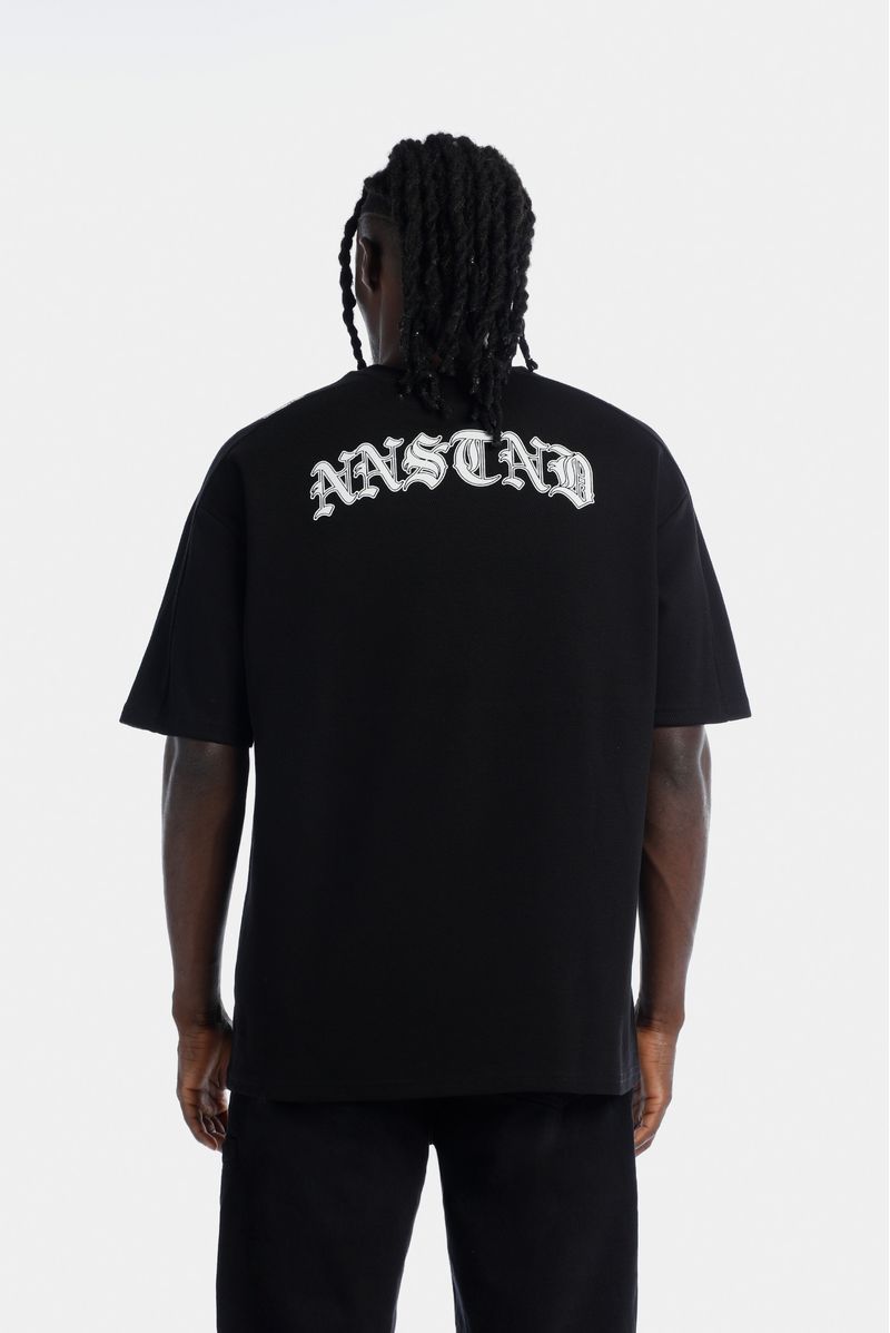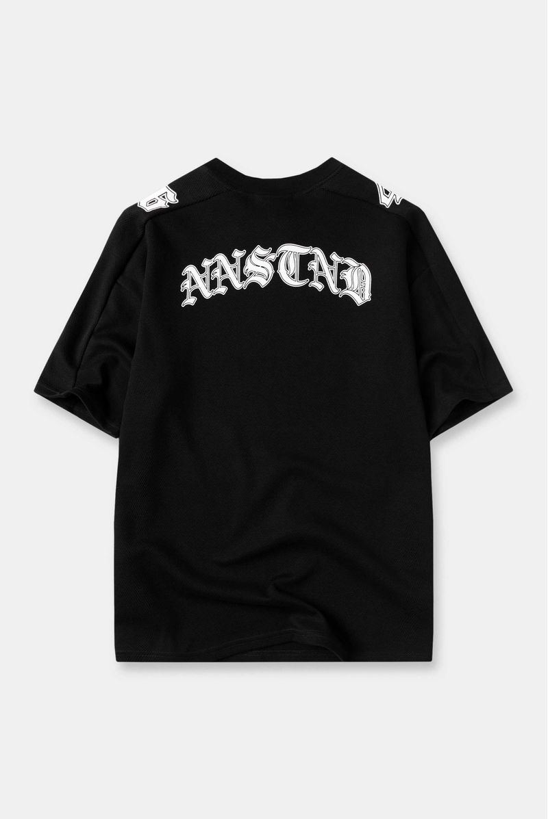 Camisa Oversize confeccionada en un Jacquard Premium de alto gramaje de 320gr de peso. Con estampación en frente y espalda en la técnica de plastisol. Lleva corte completo en hombro y manga. Además lleva un banderín bordado en costados en zigzag.