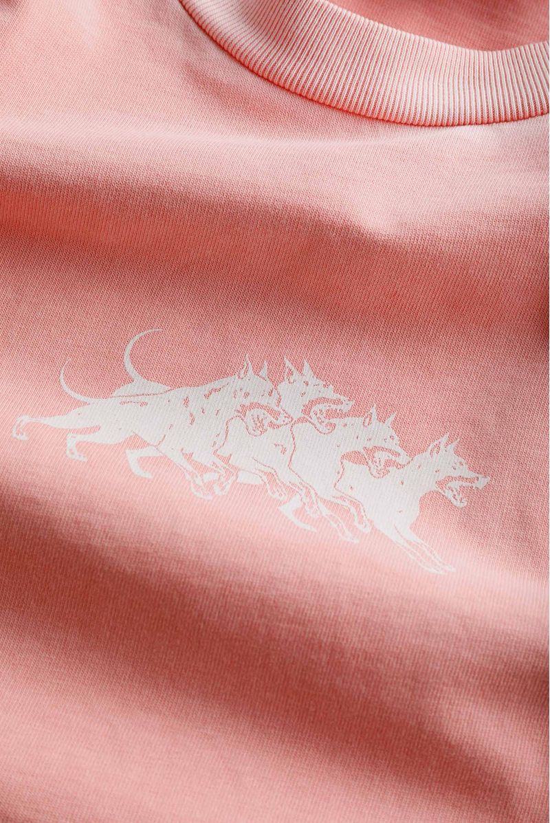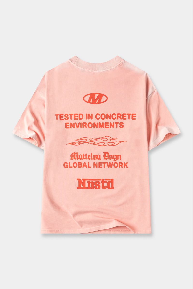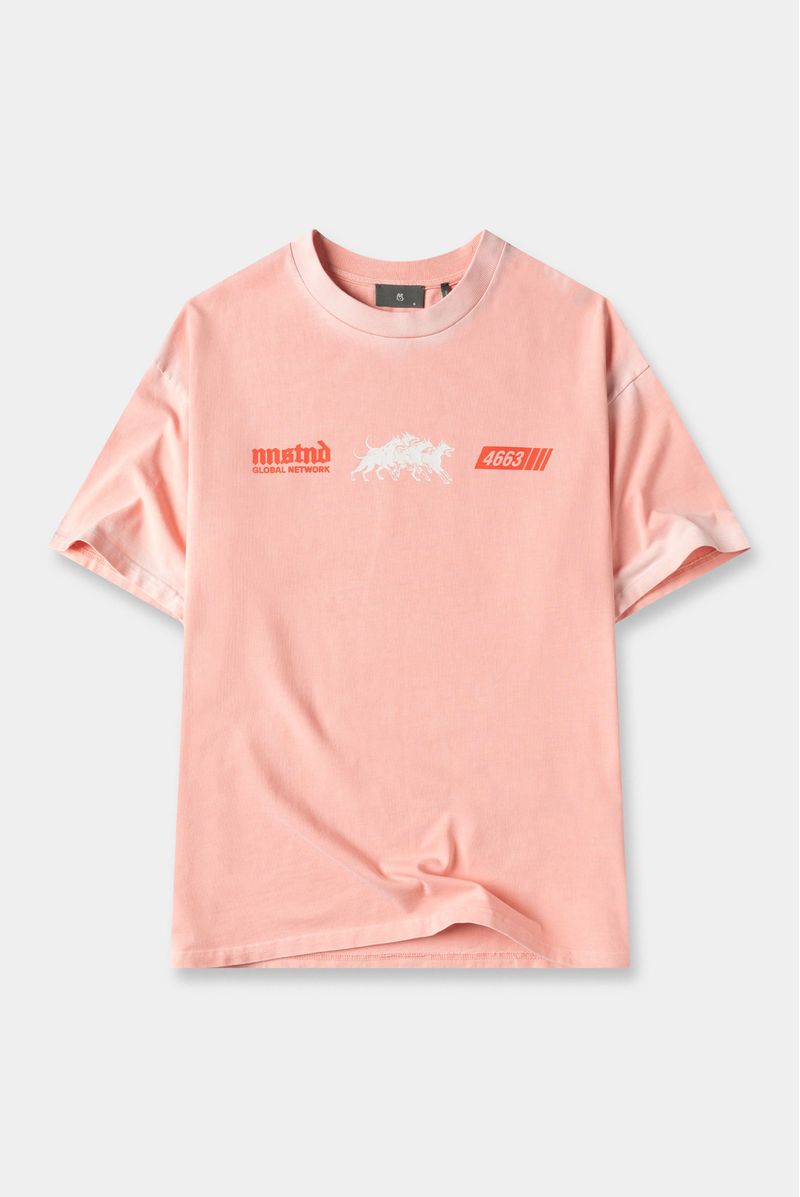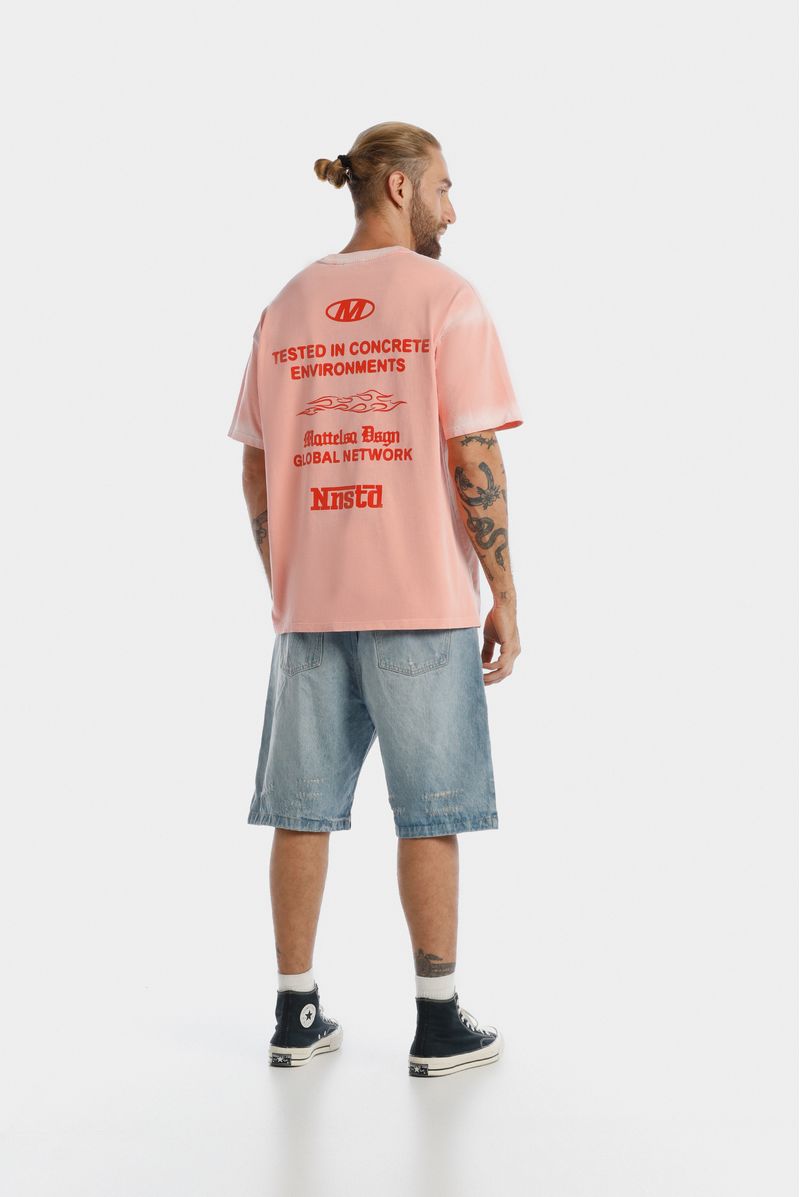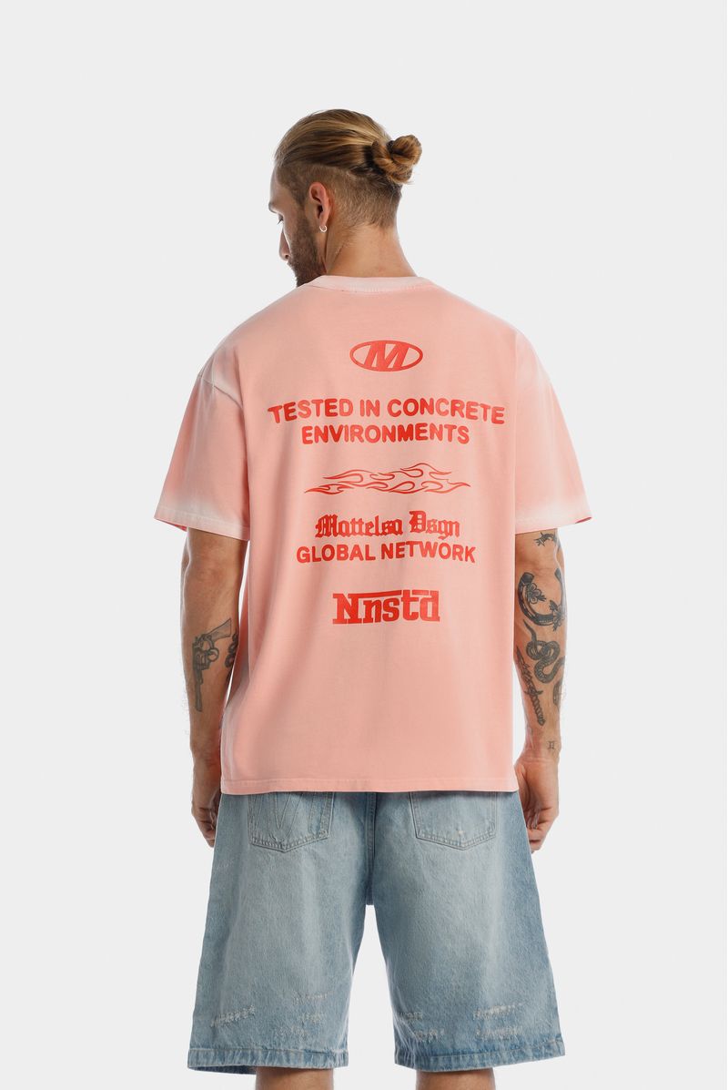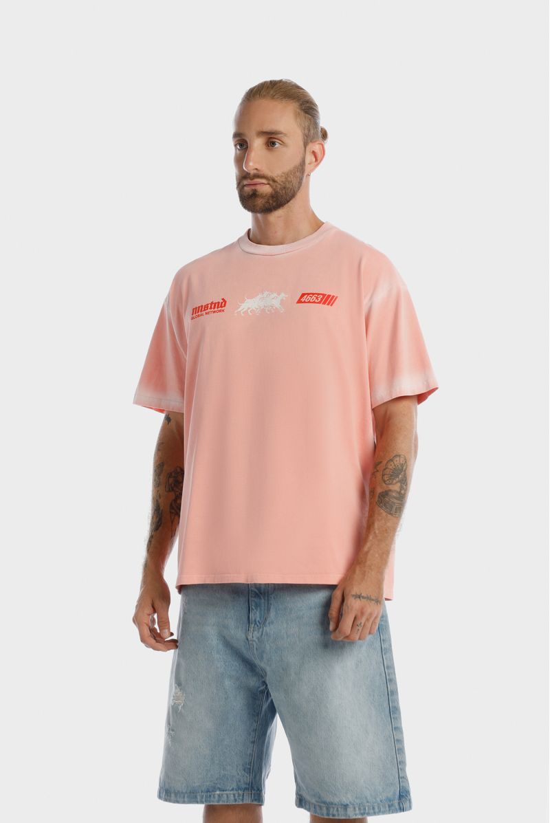 Camiseta Oversize confeccionada en un Jersey Premium de alto gramaje de 250gr de peso. Con estampación en frente y espalda en plastisol. Ademas lleva lavanderia en color rosado.