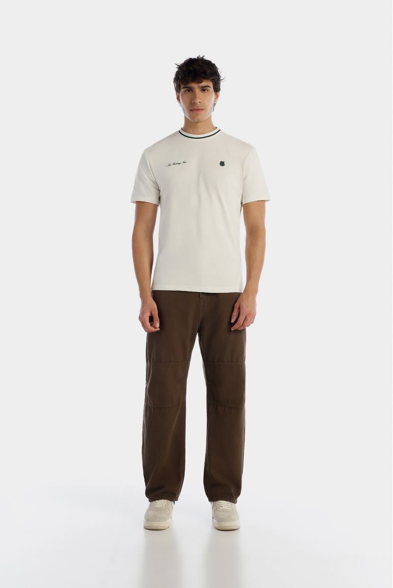 El modelo mide 1.90m y tiene una talla LModel is 6ft 2in/1.90m and wears size LCAMISETA REGULARTexto#f2f1d1240100% AlgodónAlto GramajeTela PremiumRegular Fit100% ALGODÓN/COTTON1