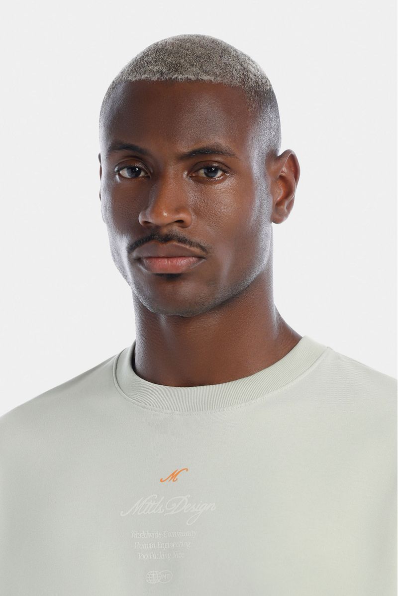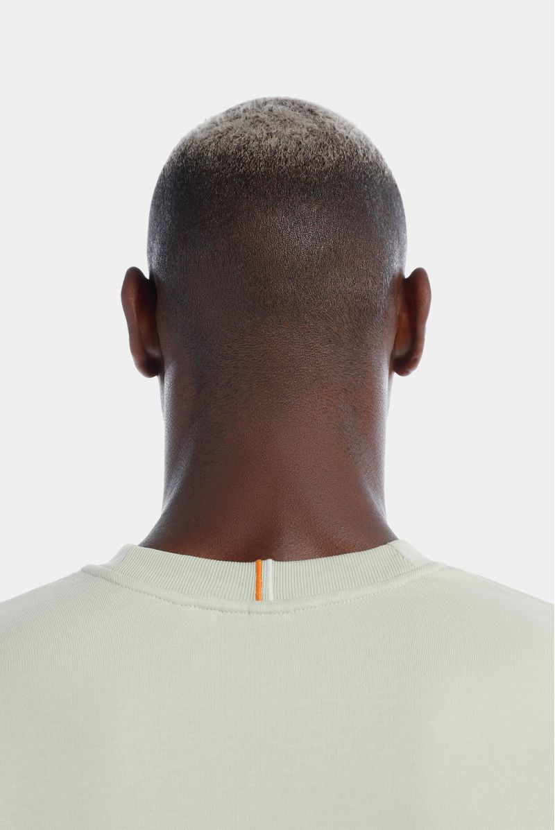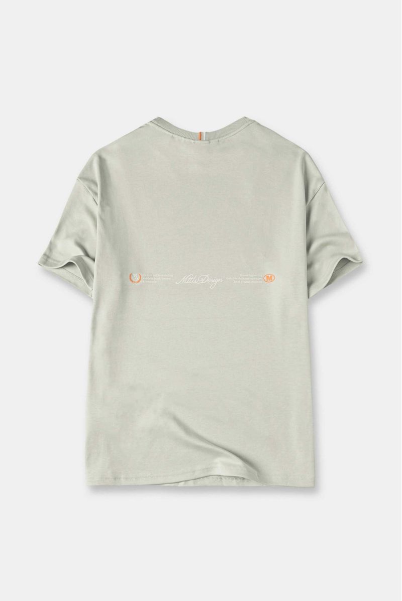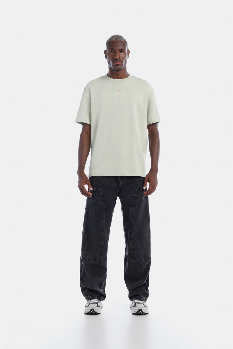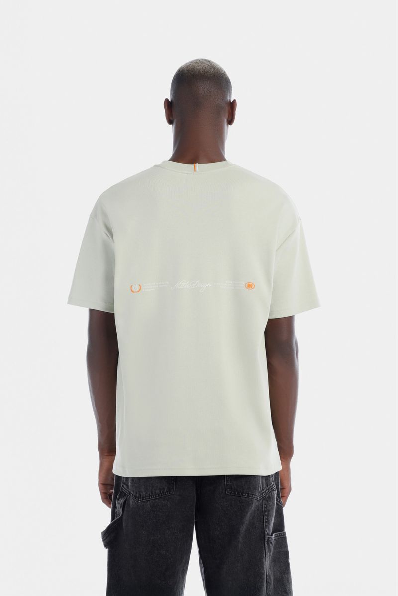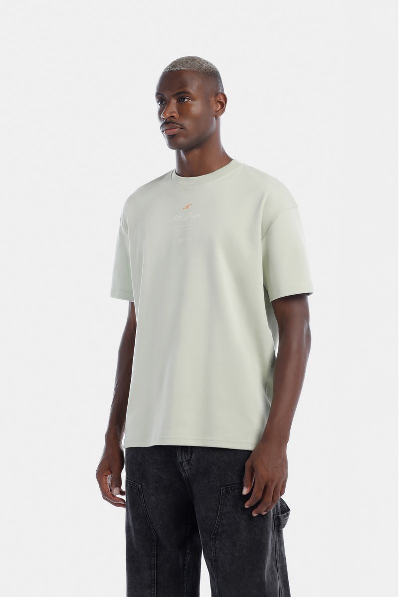 Camiseta Oversize confeccionada en un Jersey Premium de alto gramaje de 325gr de peso. Con estampación en frente y espalda en plastisol. Lleva unas líneas bordadas en cuello y los costados con terminación en puntada decorativa.