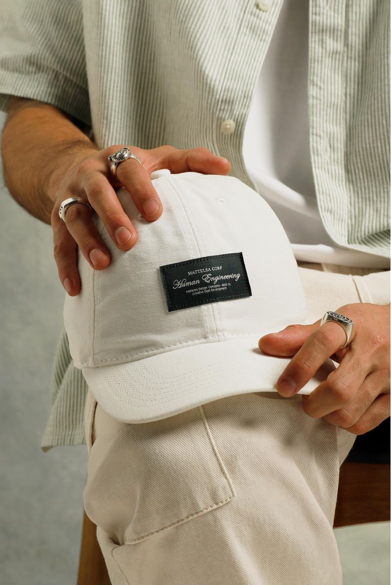 El modelo mide 1.83m y tiene una talla MModel is 5ft 10in/1.83m and wears size MGorraTexto#f2f1d1Gorras4