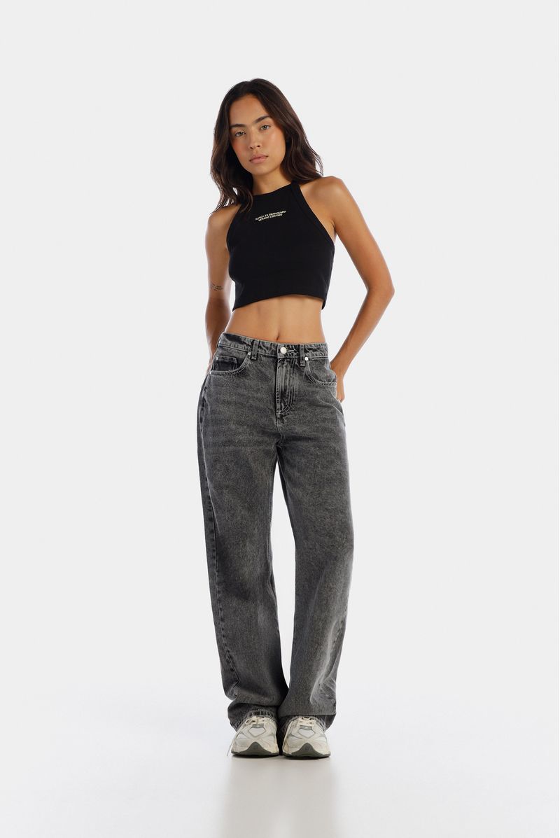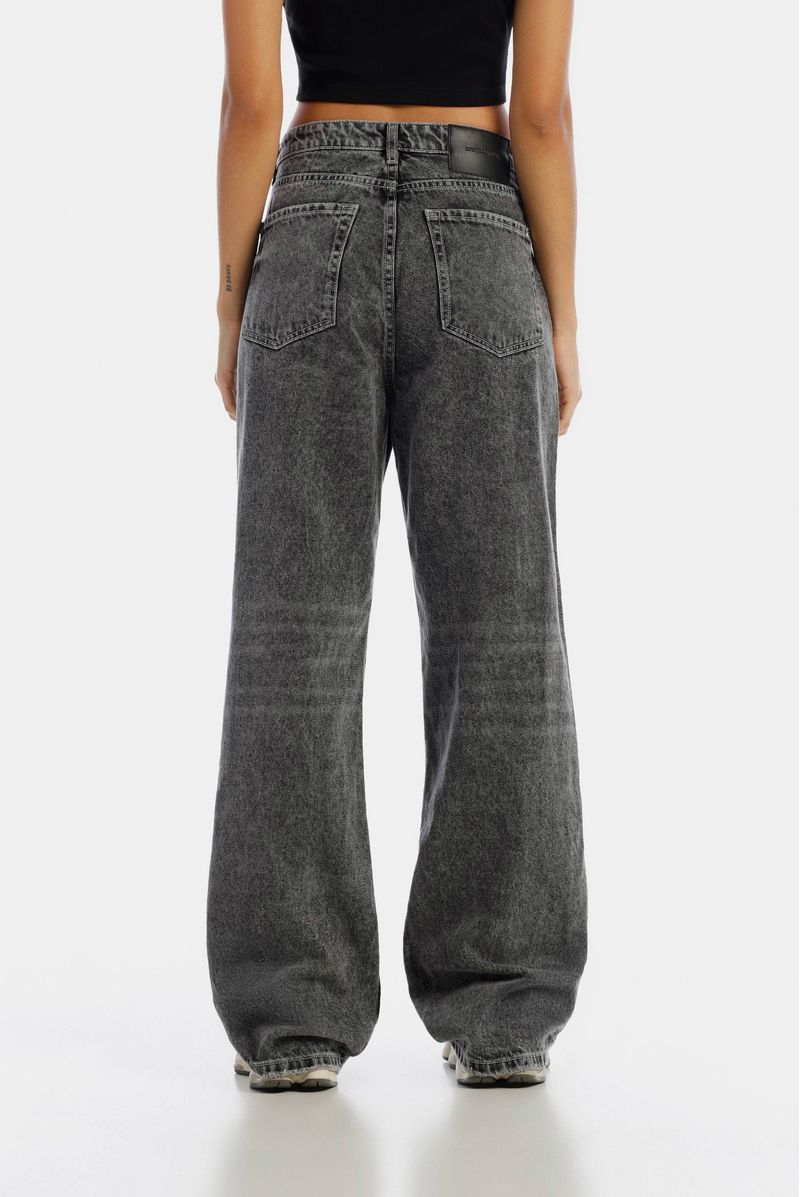 Jean Straight Tiro Alto Gris Texto