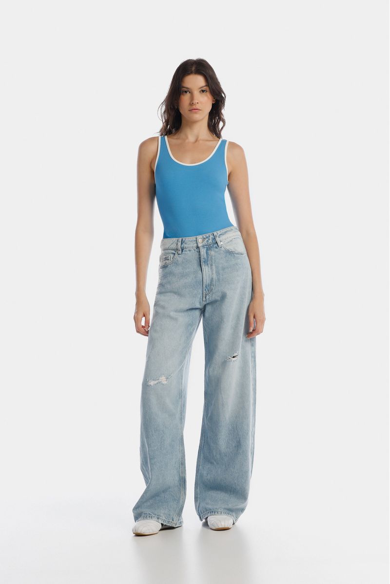 Jean Wide Leg Tiro Bajo Azul Medio Texto