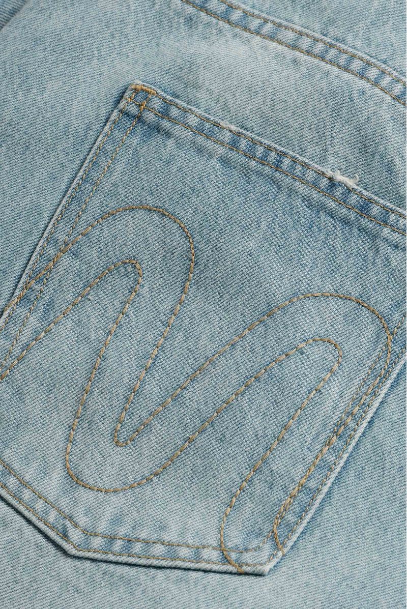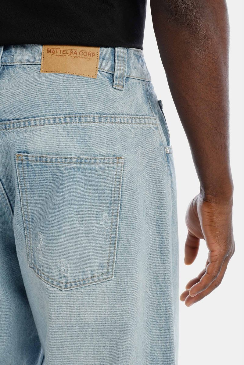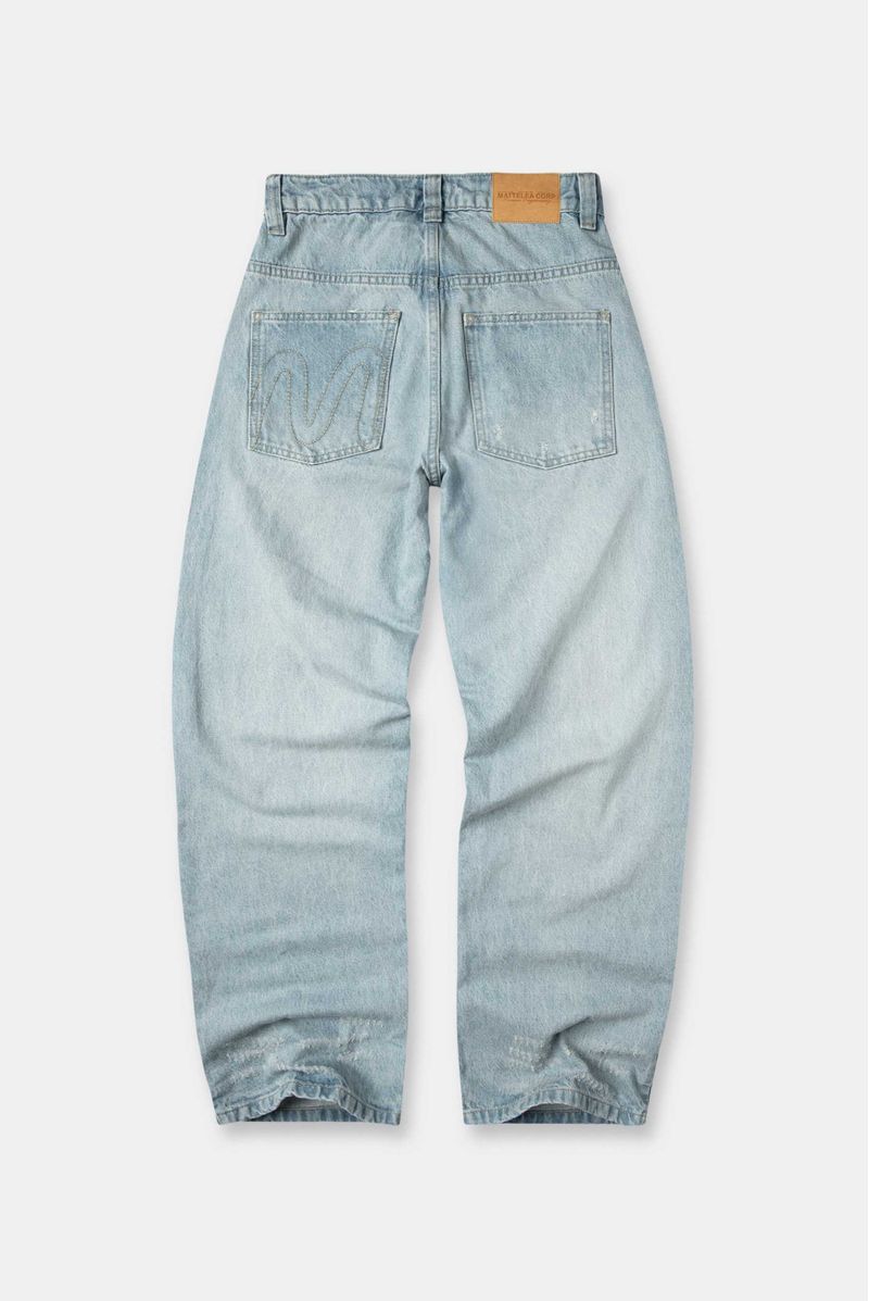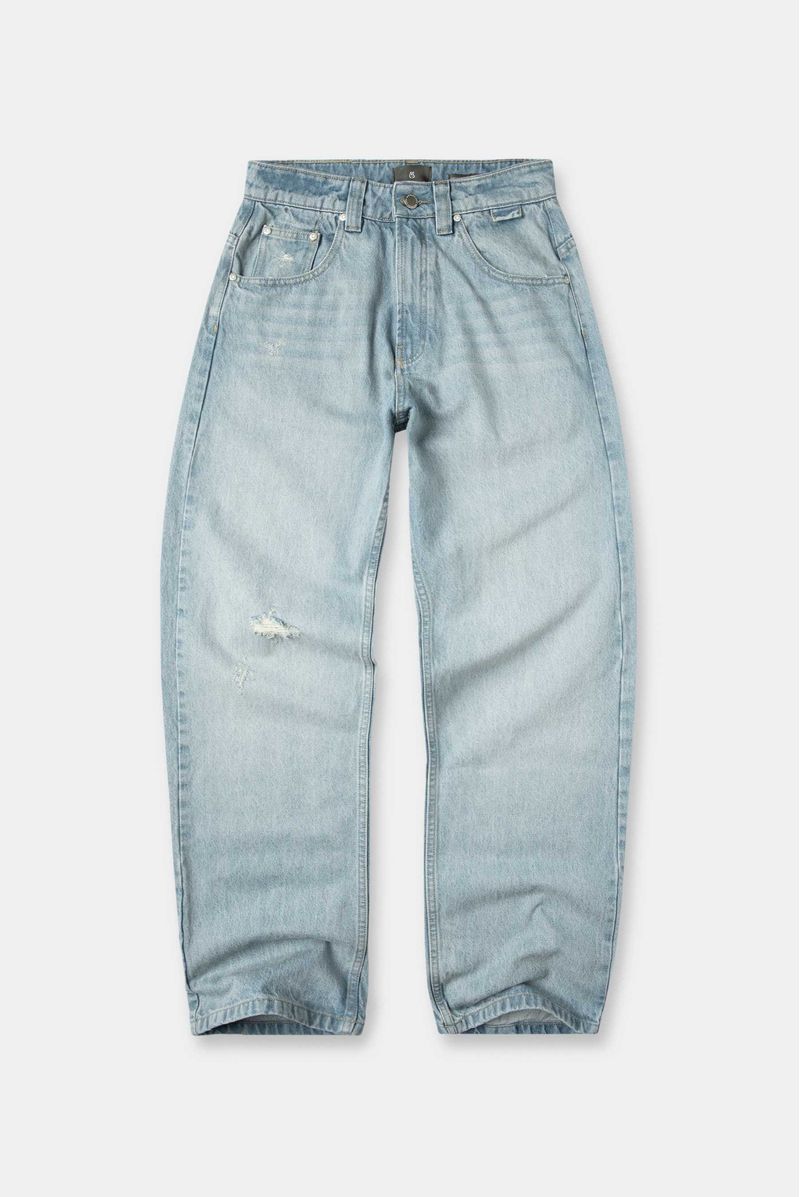 Jean fit baggy, azul claro, confeccionado en denim 100% algodón premium, 11,5oz. Diseñado con estética cinco bolsilos, destroyeds localizados, bigotes y sandblast que crean iluminación en el jean. Lleva insumos cotramarcados.