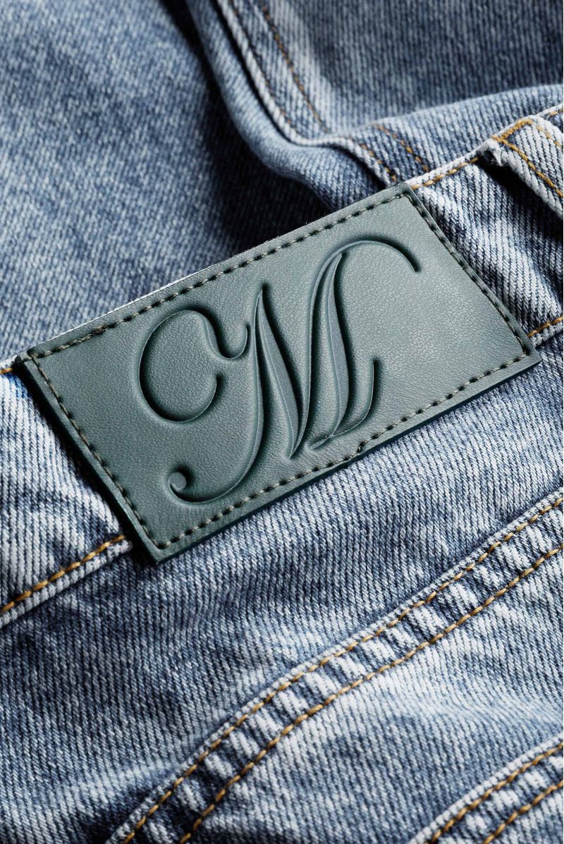 Jeans Mom Tiro Alto Azul Claro Apliques