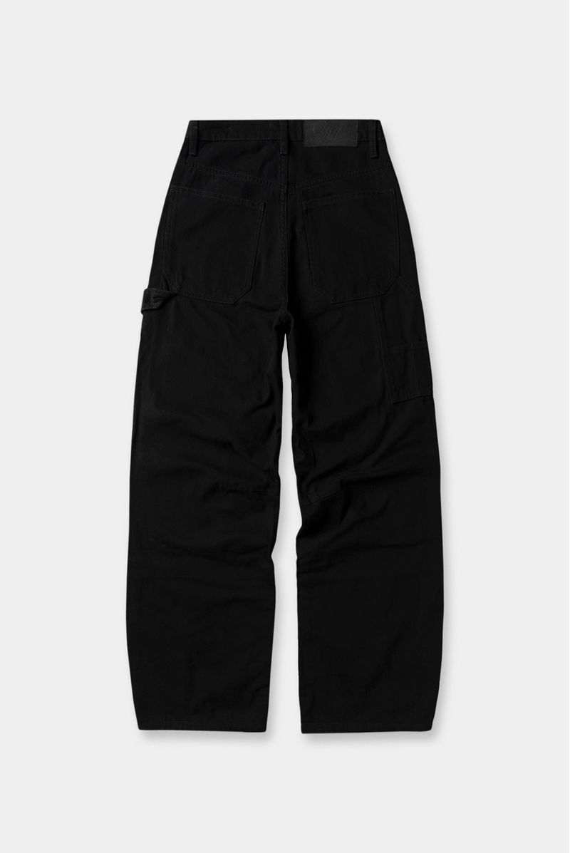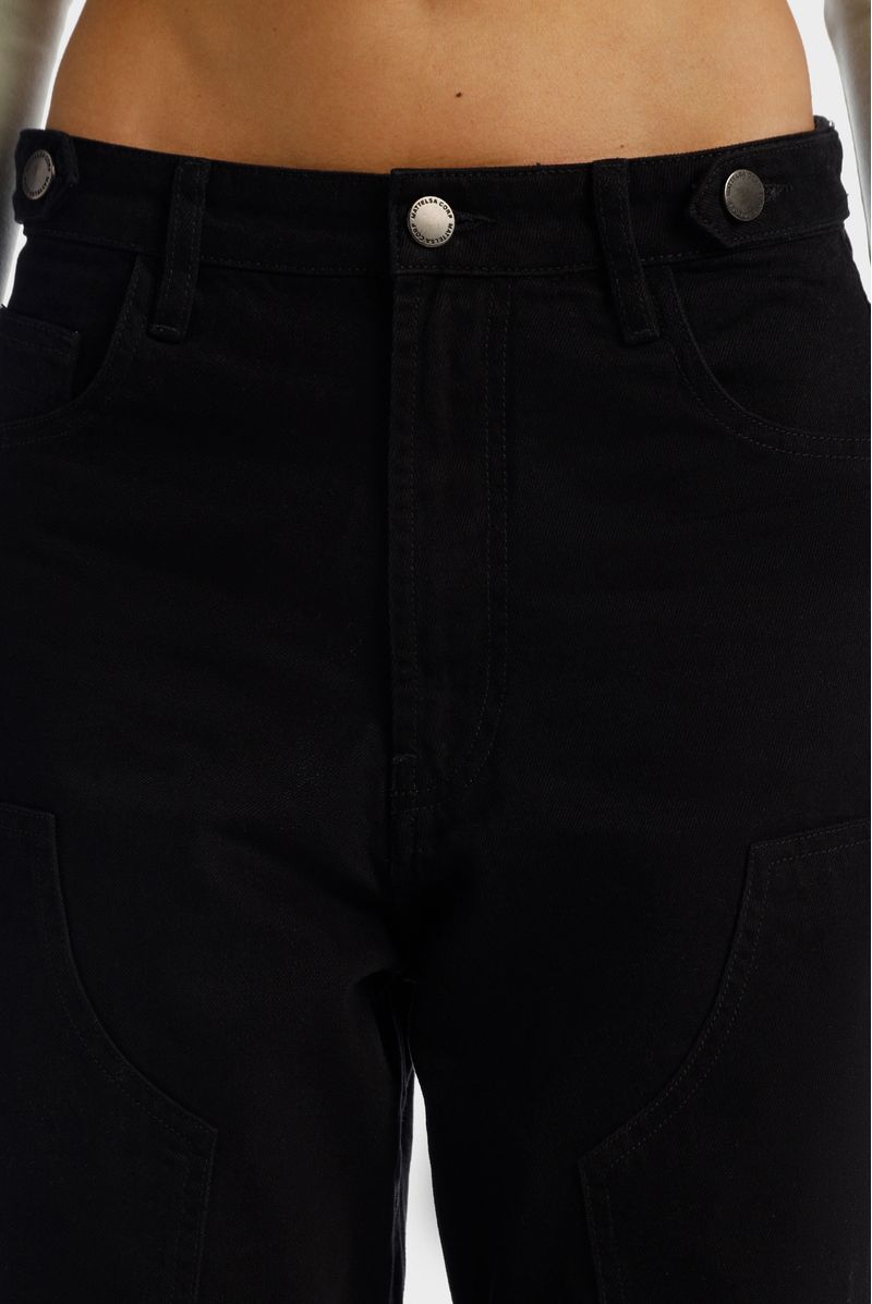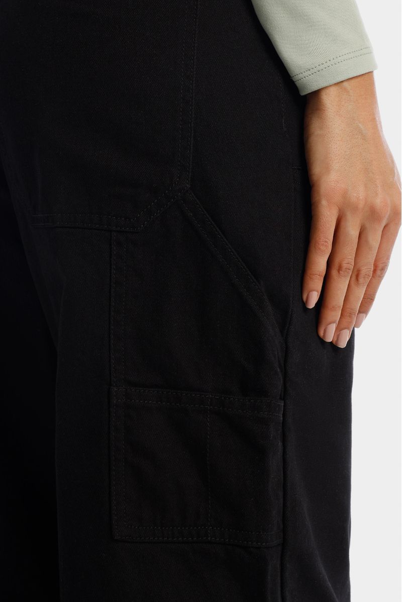Pantalón baggy balloon tiro alto, negro, confeccionado en drill 100% algodón. Diseñado con cinco bolsillos, parches carpinteros en delantero, charreteras en pretina por costados, trabilla en posterior, e insumos contramarcados en níquel.