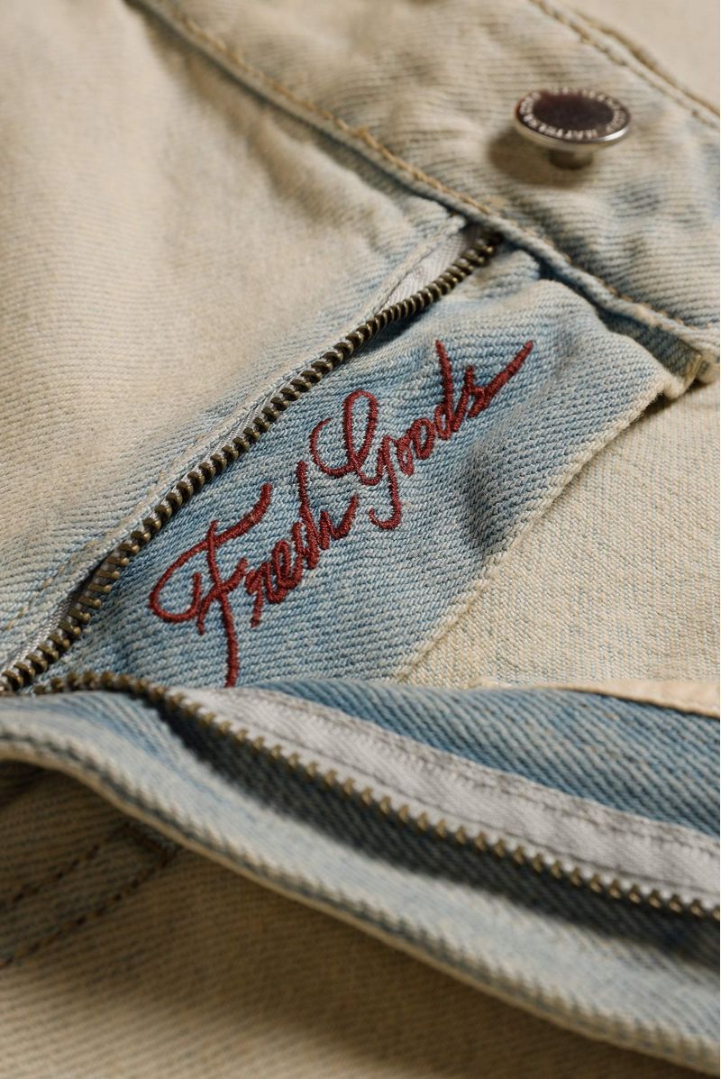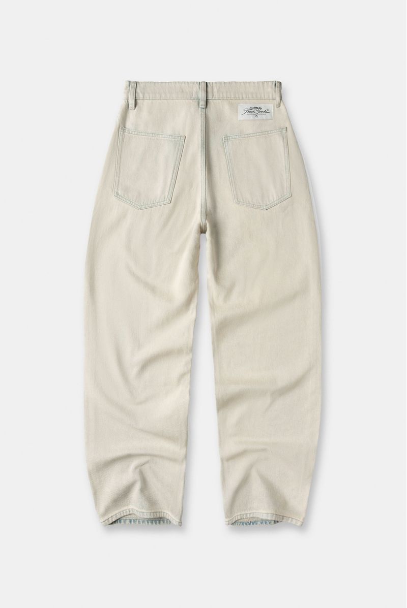 Jean baggy azul claro con dirty, confeccionado en denim con un peso de 12 Oz. Diseñado con estética cinco bolsillos, pinzas en entrepierna a la altura de rodilla, lavado azul claro con dirty vainilla. Lleva insumos contramarcados.