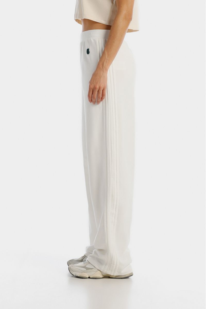 Jogger recto marfil confeccionado en un french terry de 305 gramos. Lleva sesgos aéreos en tovell terry a lo largo de ambos costados, además de un aplique conejo entonado a la prenda ubicado en el costado delantero izquierdo.