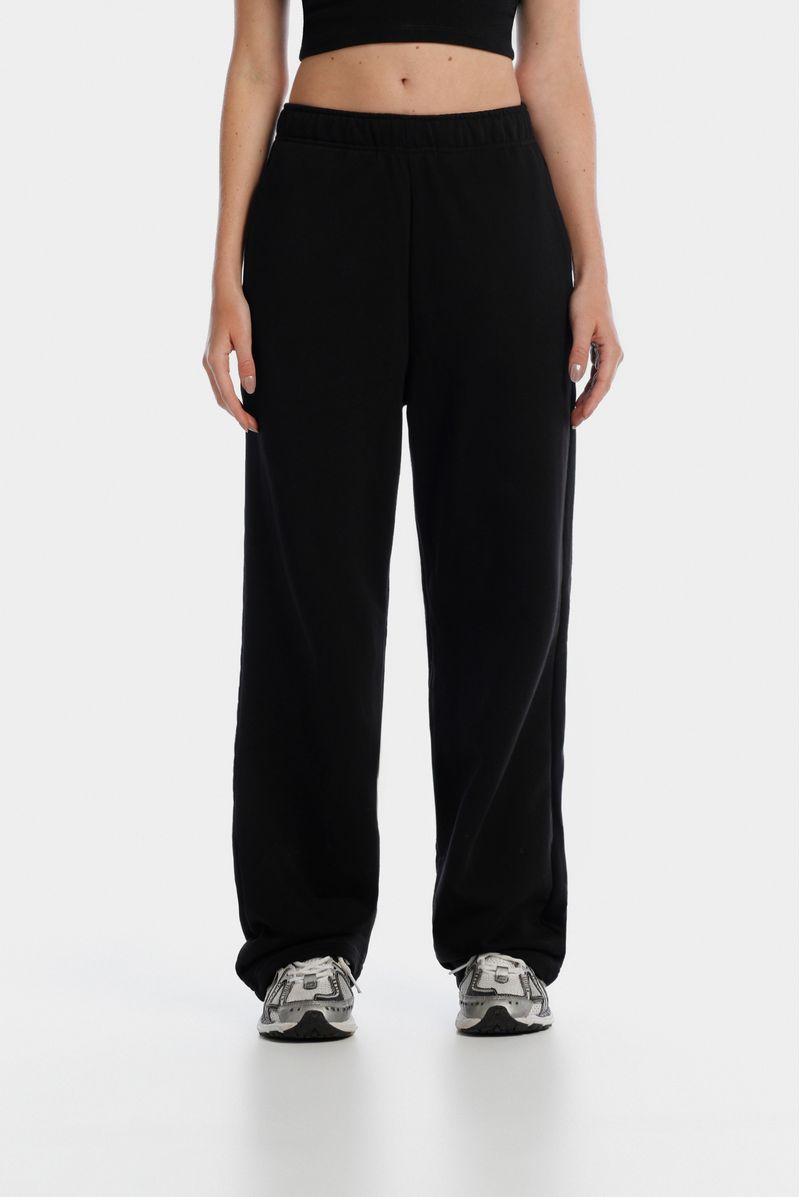 Jogger básico negro confeccionado en un french terry de alto gramaje de 400 gramos. Pretina en la misma tela con elástico interno. Cordón interno. EL fit es amplio, largo over.