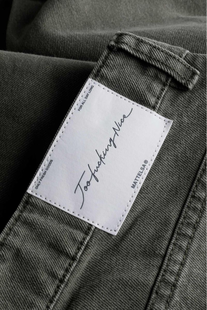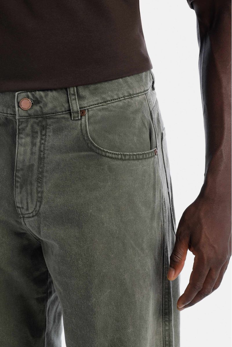 Pantalón recto loose color verde con desgastes, confeccionado en tela 100% algodón premium de 10 oz. Diseñado con cinco bolsillos, garra marfil contramarcada e insumos en contraste contramarcados.