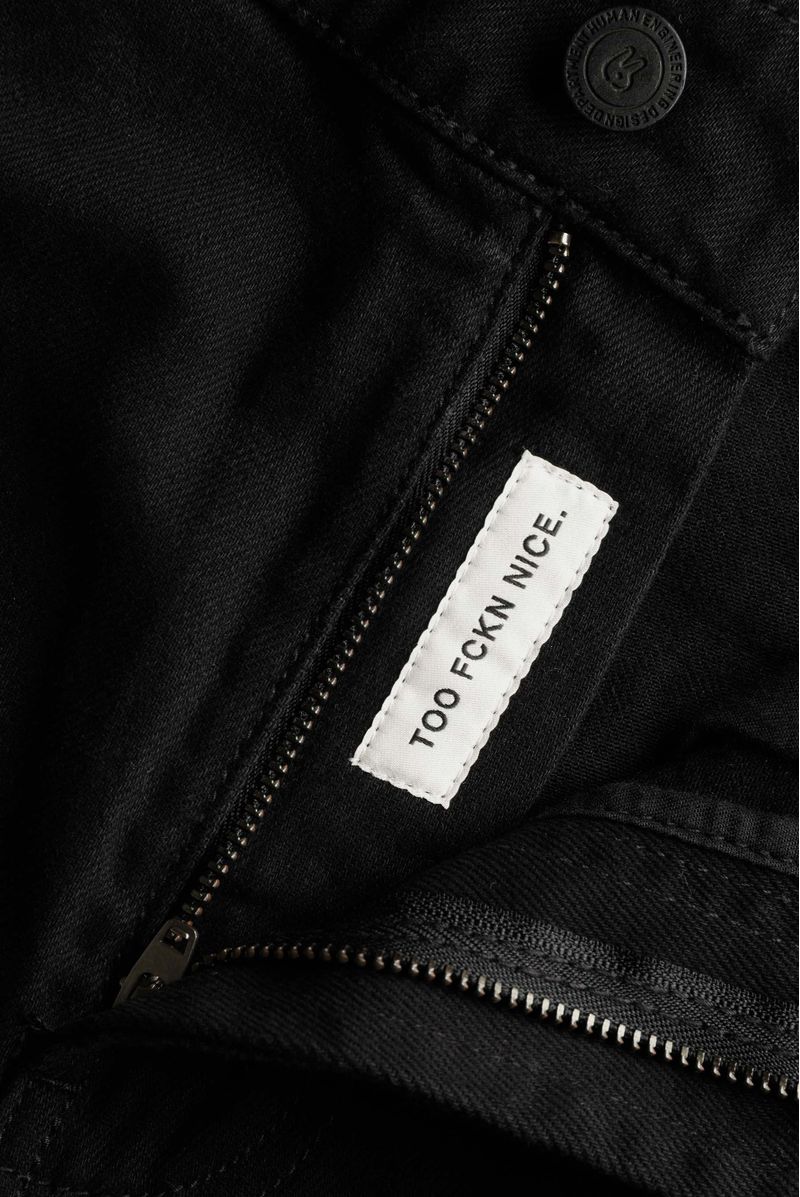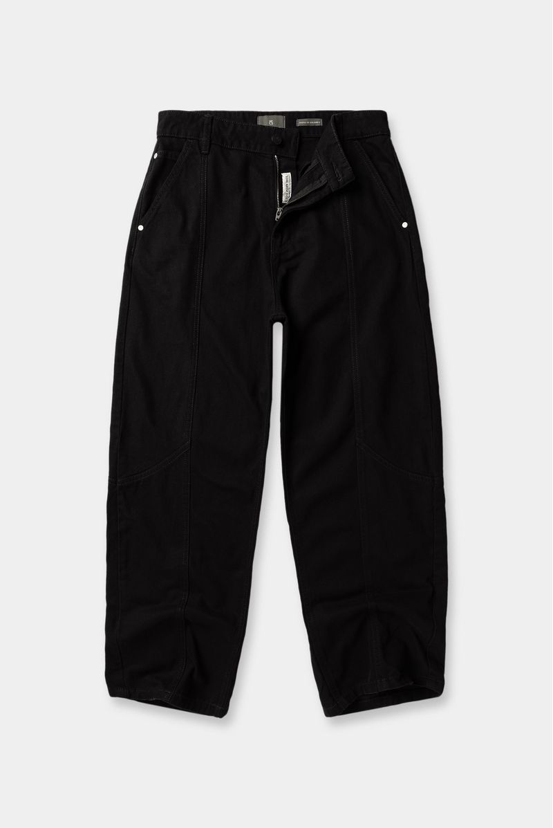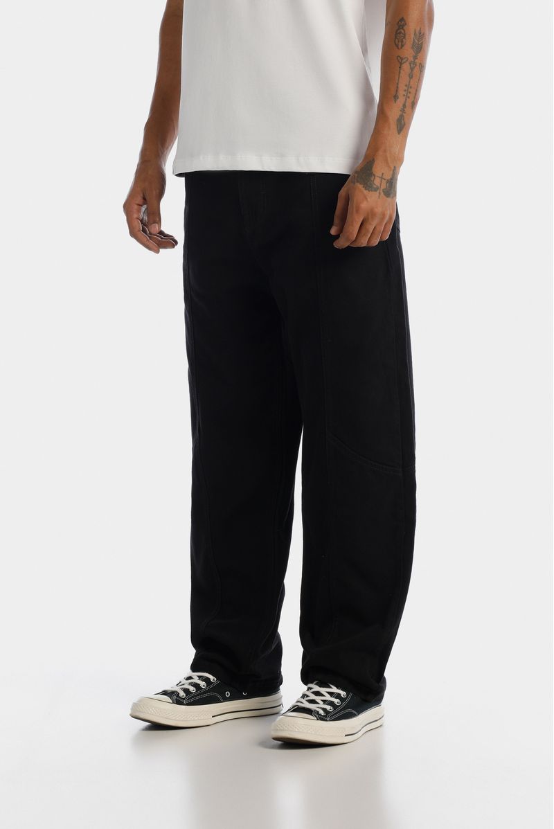 Pantalón 5 bolsillos negro, fit amplio, confeccionado en denim premium 100% Algodón - peso 10oz, botón y remaches mattelsa,detalle de cortes frontales, banderín en pretina y bordado contraste en bolsillo.