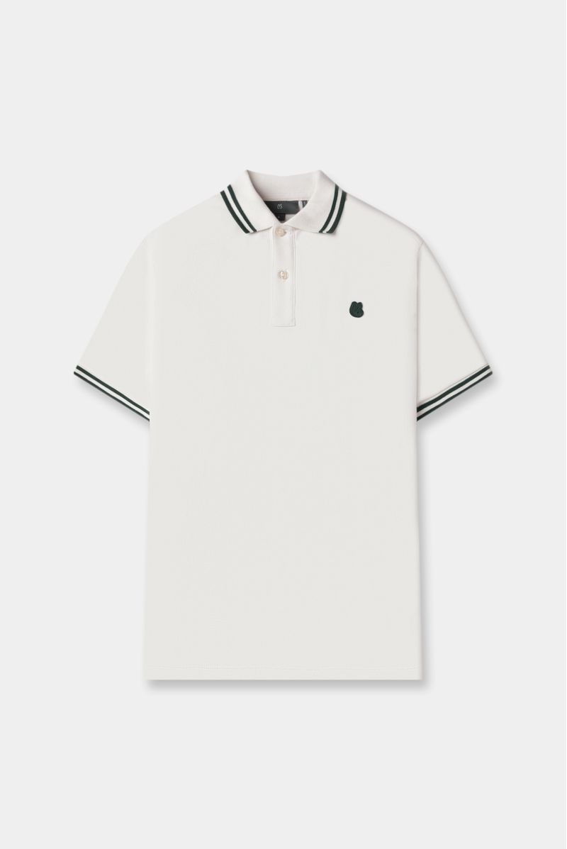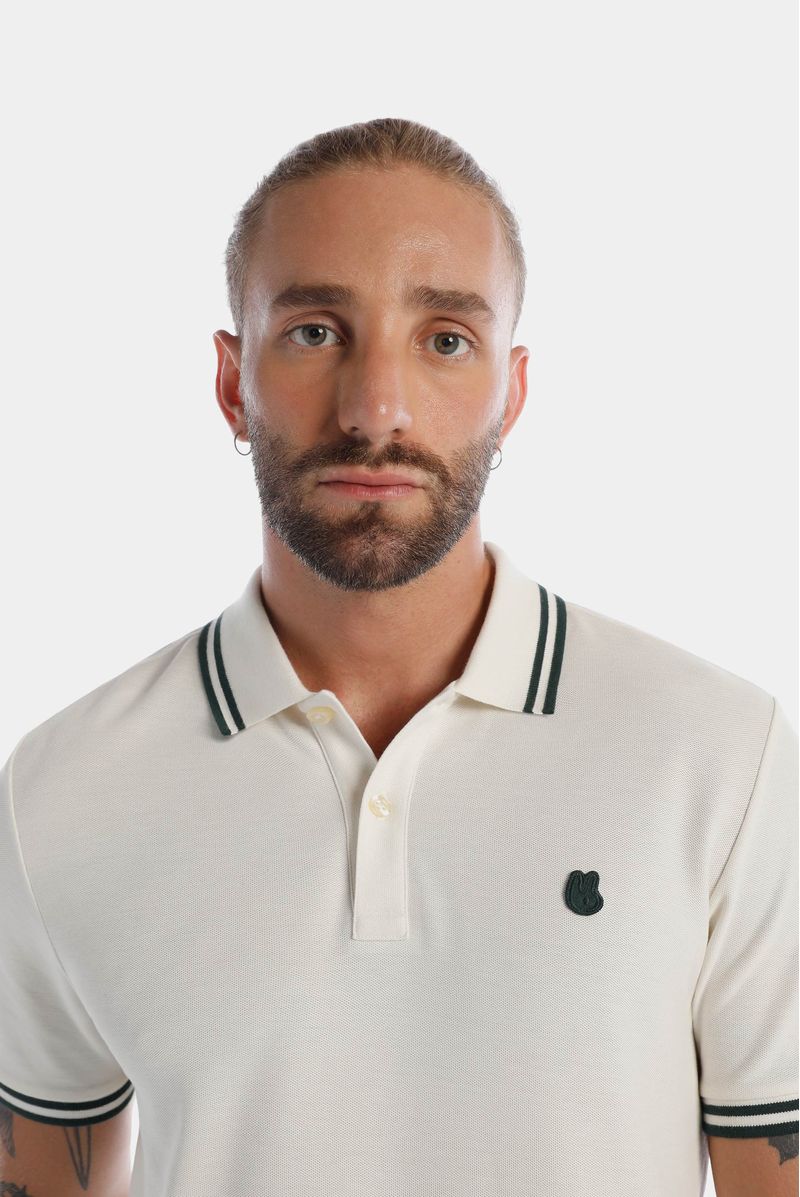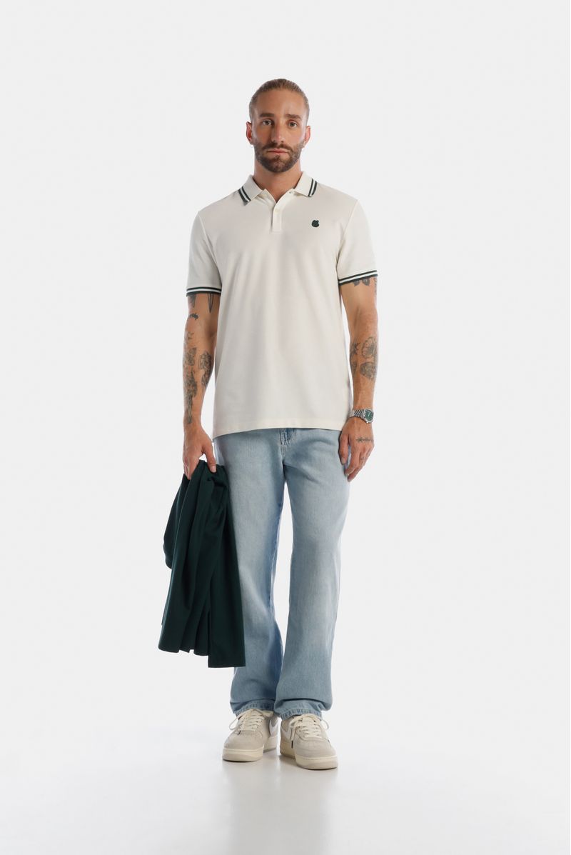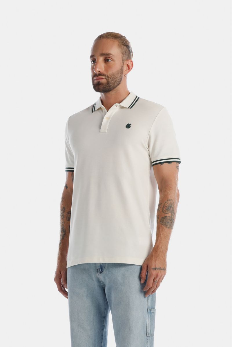 Polo Regular Fit confeccionada en una Piqué Premium de gramaje medio de 200gr peso. Tiene un aplique bordado con el logo de la marca, en contraste color Verde. Además lleva cajas en costados y cuello y puños tejidos con líneas en contraste.