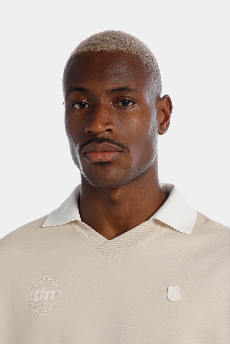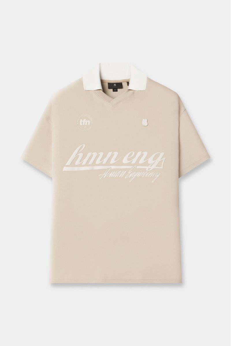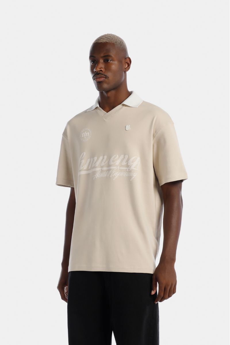 Camiseta Oversize confeccionada en un Jersey Premium de 325gr de peso. Con estampación en frente en alta densidad, lo cual le da relieve al texto. Lleva un aplique bordado con el logo de la marca, cuello tipo polo tejido y cuello en "V".