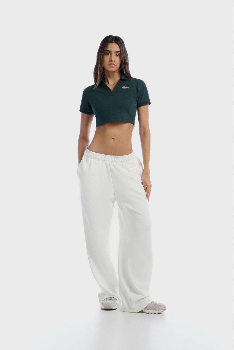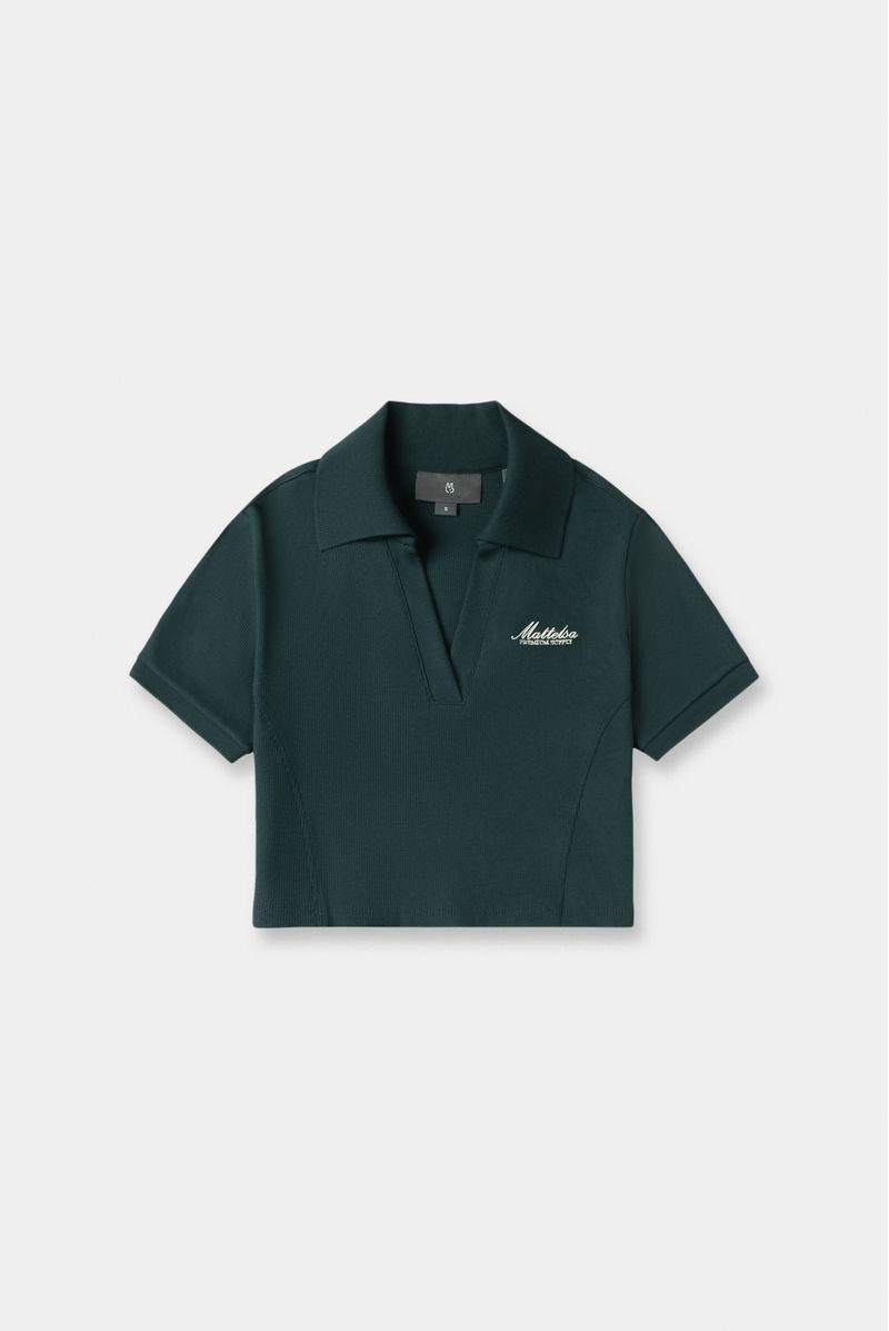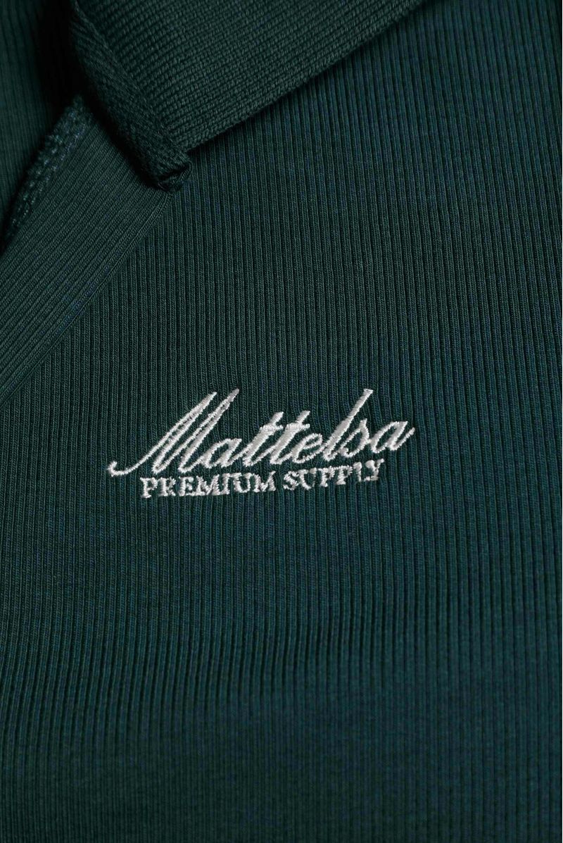 Polo ajustada verde confeccionada en un rib de 280 gramos. Lleva texto bordado en el delantero izquierdo color marfil.