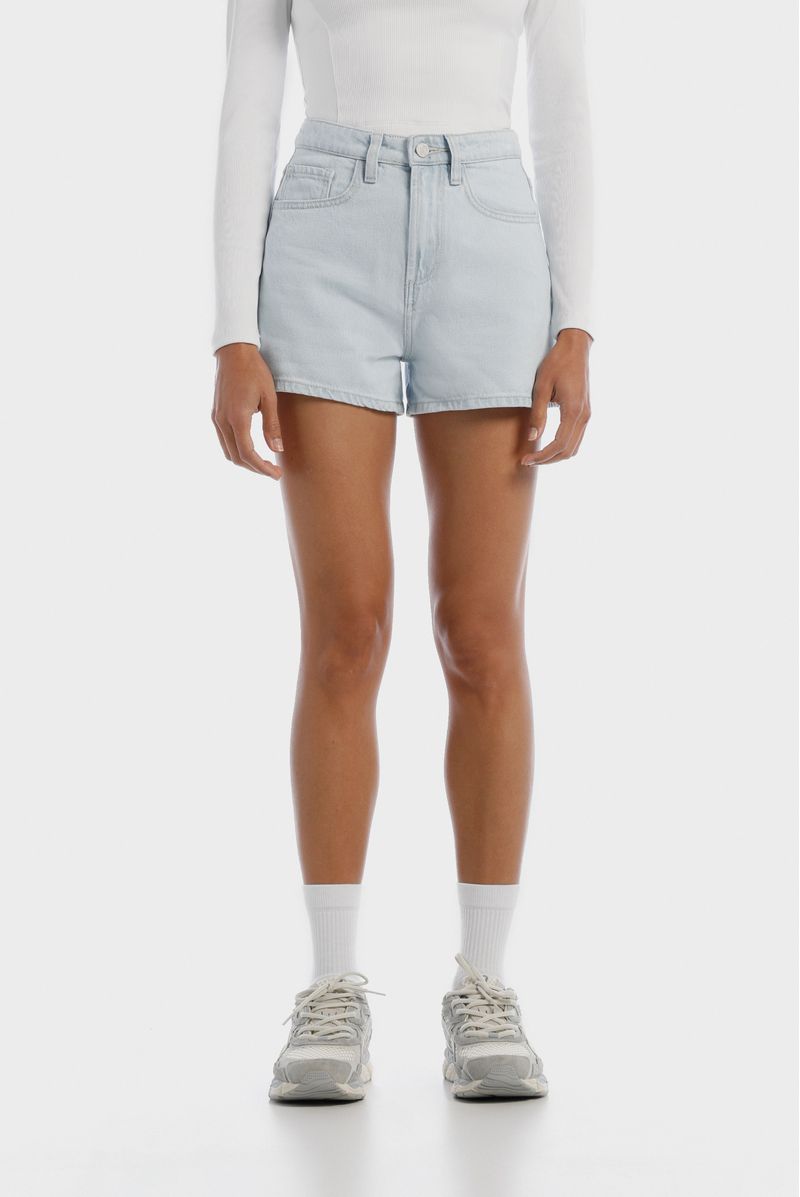 Short azul hielo, confeccionado en tela premium, estética cinco bolsillos, insumos contramarcados "Mattelsa" y detalle especial en garra.